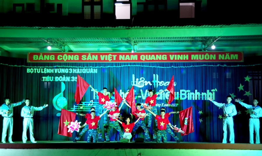 Tối 29/5, tại Đà Nẵng, Tiểu đoàn 355, Vùng 3 Hải quân tổ chức Liên hoan tiếng hát và vũ điệu binh nhì năm 2022 cho chiến sĩ mới.