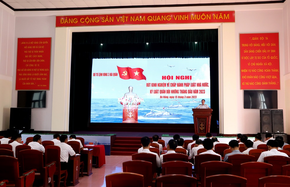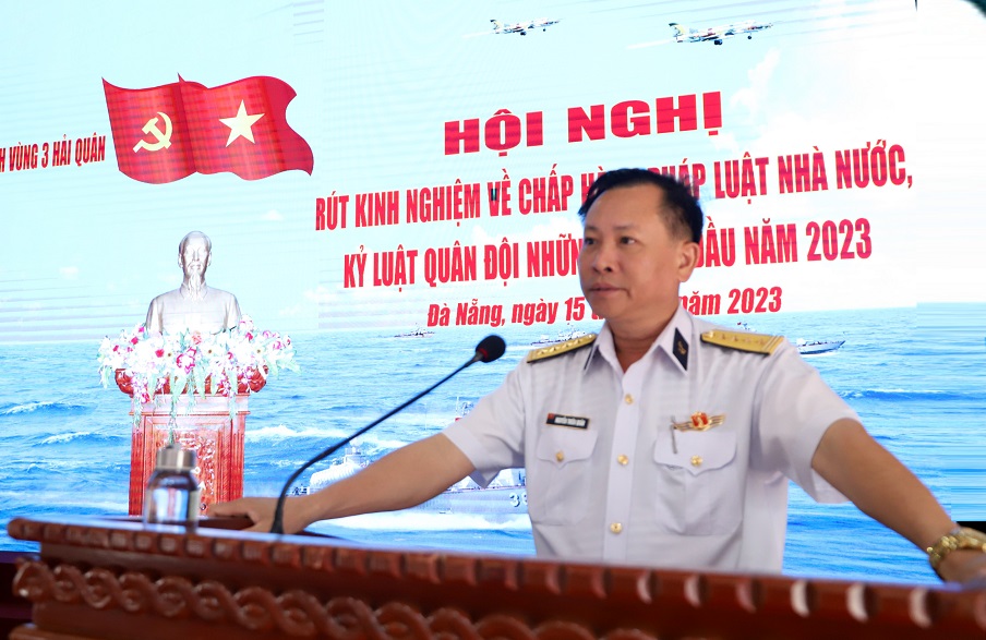 Ngày 15/3, tại Đà Nẵng, Vùng 3 Hải quân tổ chức Hội nghị rút kinh nghiệm về chấp hành pháp luật Nhà nước, kỷ luật Quân đội những tháng đầu năm 2023. Đại tá Nguyễn Thiên Quân, Tư lệnh Vùng chủ trì.