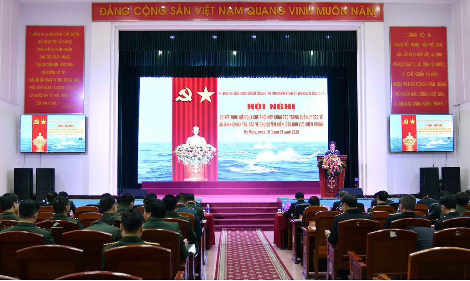 Chiều 10/1, tại Đà Nẵng, Bộ Tư lệnh Vùng 3 Hải quân tổ chức Hội nghị sơ kết thực hiện Quy chế phối hợp công tác trong quản lý, bảo vệ chủ quyền biển đảo, bảo vệ an ninh chính trị khu vực miền Trung. Chuẩn Đô đốc Nguyễn Thiên Quân, Tư lệnh Vùng 3 chủ trì.