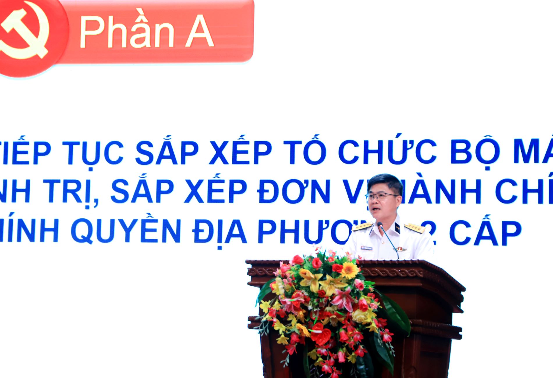 Đại tá Phạm Tiến Chinh, Chủ nhiệm Chính trị Vùng 3 đã truyền đạt đến các đại biểu tham dự 4 nhóm vấn đề trong Hội nghị lần thứ 11 Ban Chấp hành Trung ương Đảng khóa XIII đó là: Nhóm vấn đề về tiếp tục sắp xếp tinh gọn tổ chức bộ máy của hệ thống chính trị, sắp xếp đơn vị hành chính và tổ chức chính quyền địa phương 2 cấp; Công tác chuẩn bị Đại hội XIV của Đảng và bầu cử Quốc hội khóa XVI, bầu cử Hội đồng nhân dân các cấp nhiệm kỳ 2026 - 2031; Một số nội dung khác theo quy chế làm việc của Ban Chấp hành Trung ương Đảng khóa XIII; Về công tác cán bộ.