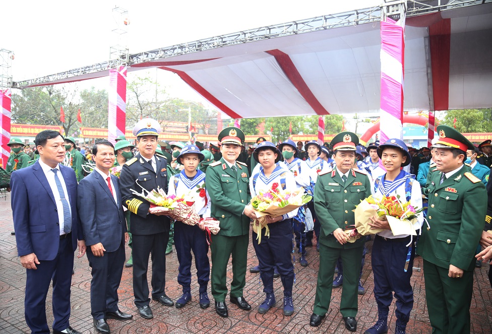 Cùng dự có đồng chí Võ Trọng Hải, Phó Bí thư Tỉnh ủy, Chủ tịch UBND tỉnh Hà Tĩnh; Thiếu tướng Lê Hồng Nhân, Phó Tư lệnh, Tham mưu trưởng Quân khu 4; Đại tá Nguyễn Quốc Doanh, Phó Tham mưu trưởng Hải quân; đại diện các ban, ngành, đoàn thể địa phương; đại diện các đơn vị nhận quân và đông đảo nhân dân.