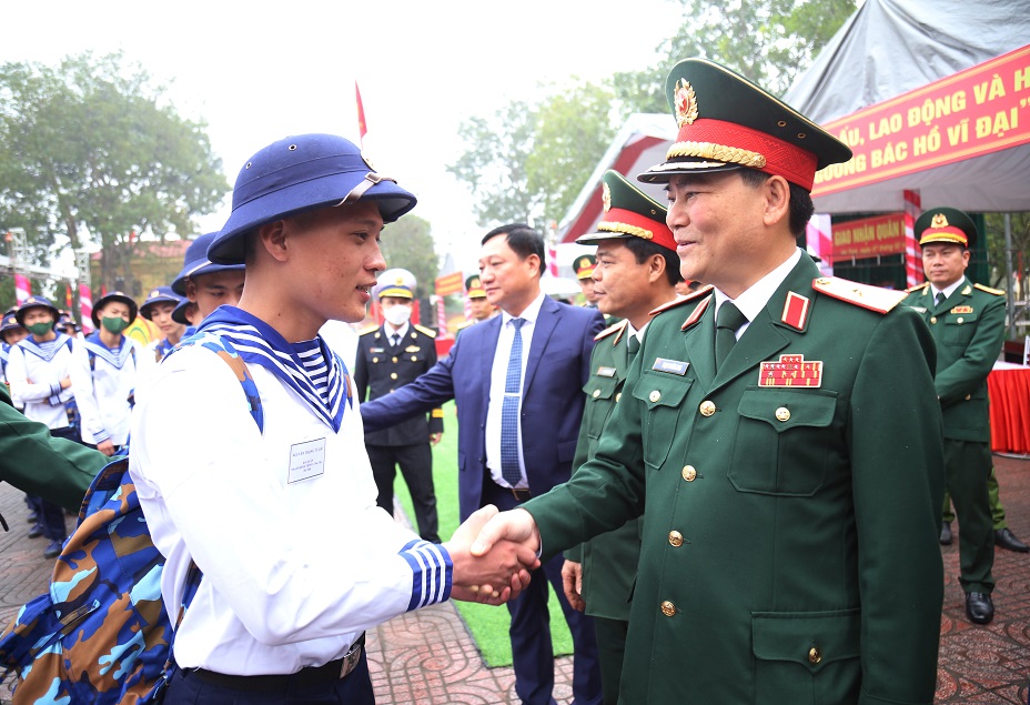 Thiếu tướng Phạm Trường Sơn động viên thanh niên nhập ngũ
