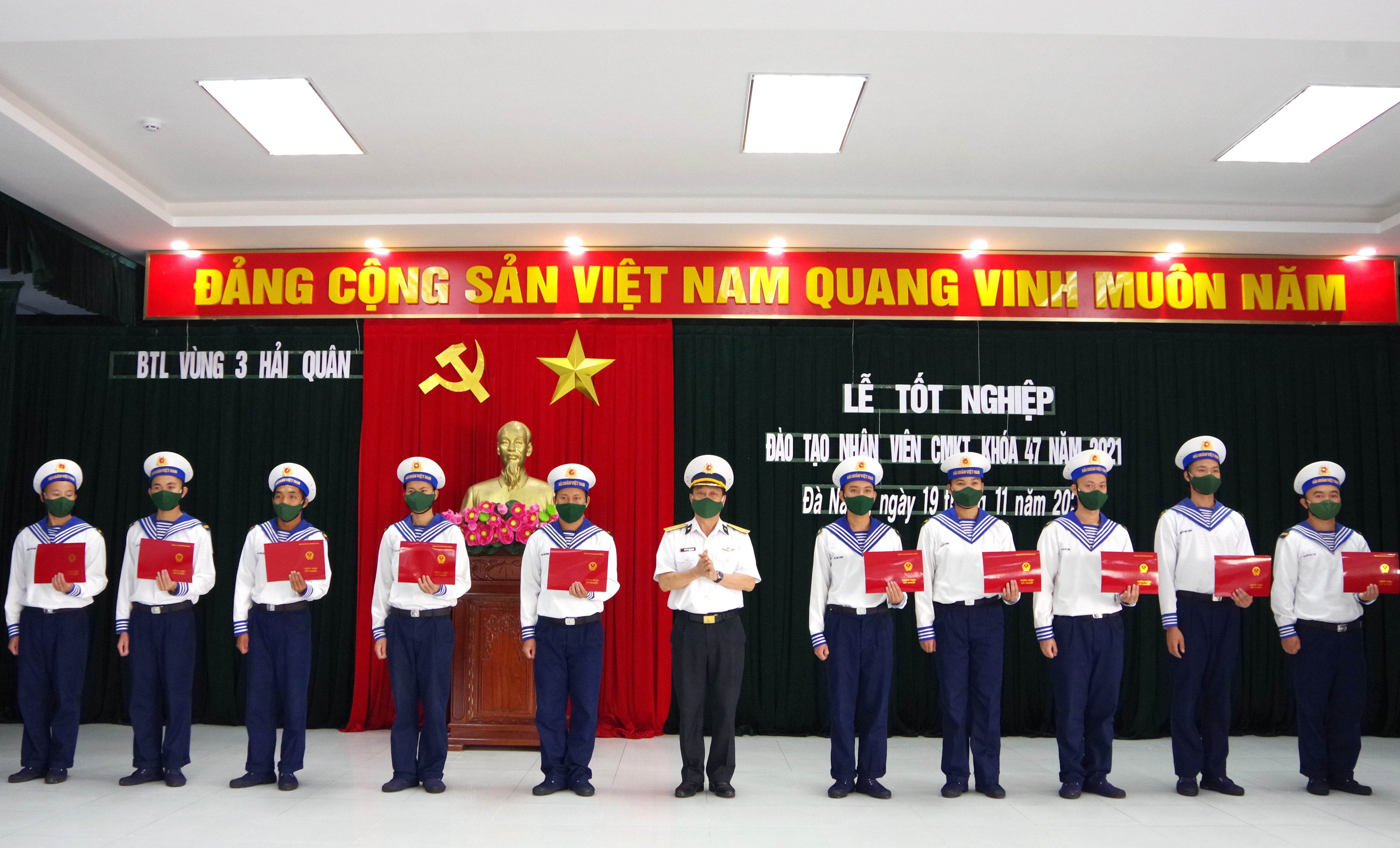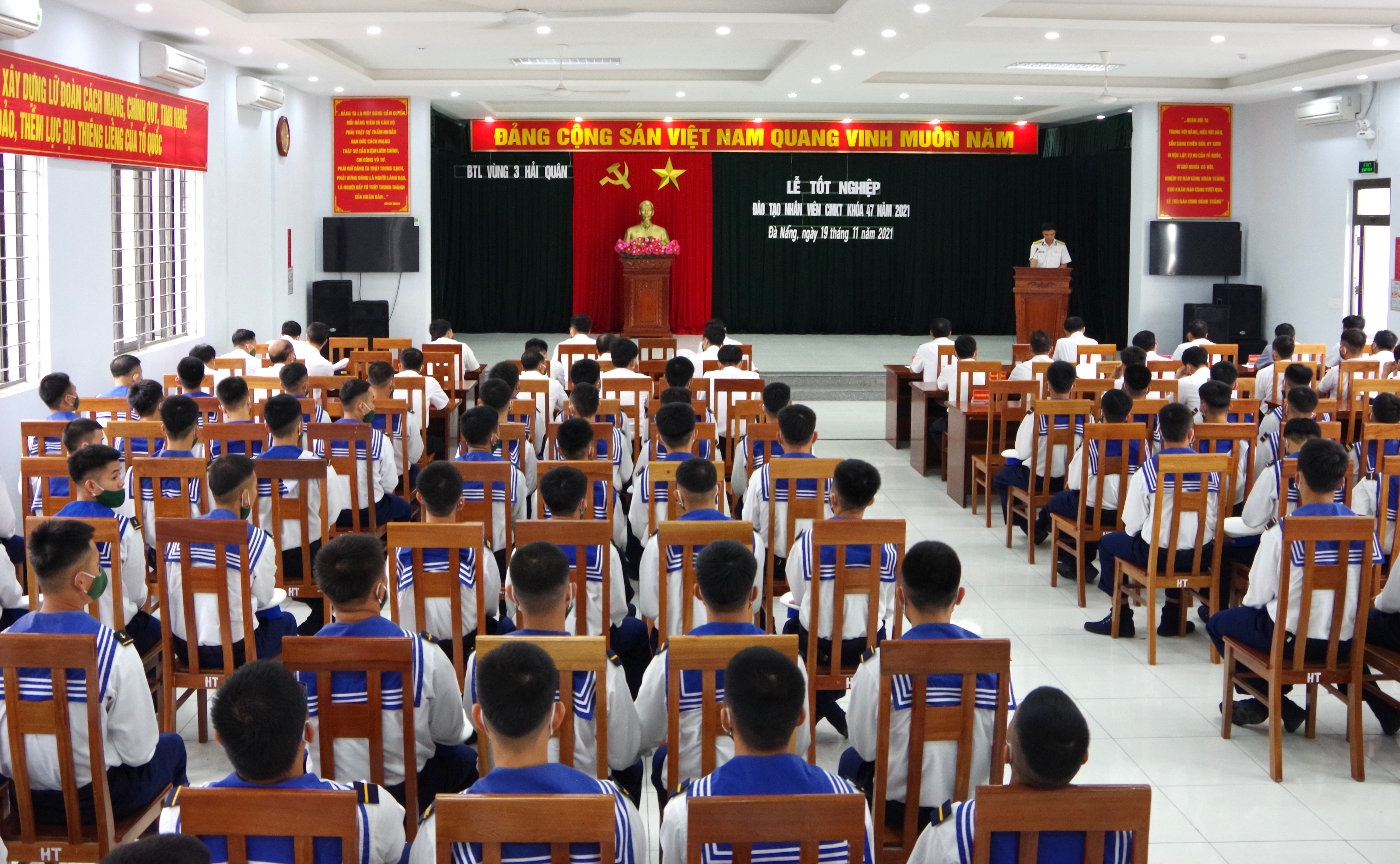 Sáng 19/11, tại Đà Nẵng, Vùng 3 Hải quân tổ chức lễ tốt nghiệp đào tạo nhân viên chuyên môn kỹ thuật Khóa 47. Đại tá Nguyễn Quốc Quảng, Phó Tư lệnh Vùng chủ trì.