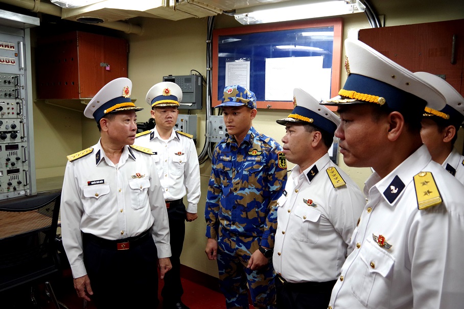 Đại tá Nguyễn Thiên Quân ghi nhận và biểu dương Lữ đoàn 172 đã làm tốt công tác chuẩn bị để phục vụ các đoàn về tham quan, học tập xây dựng tàu chính quy mẫu mực và thực hiện ngày kỹ thuật.