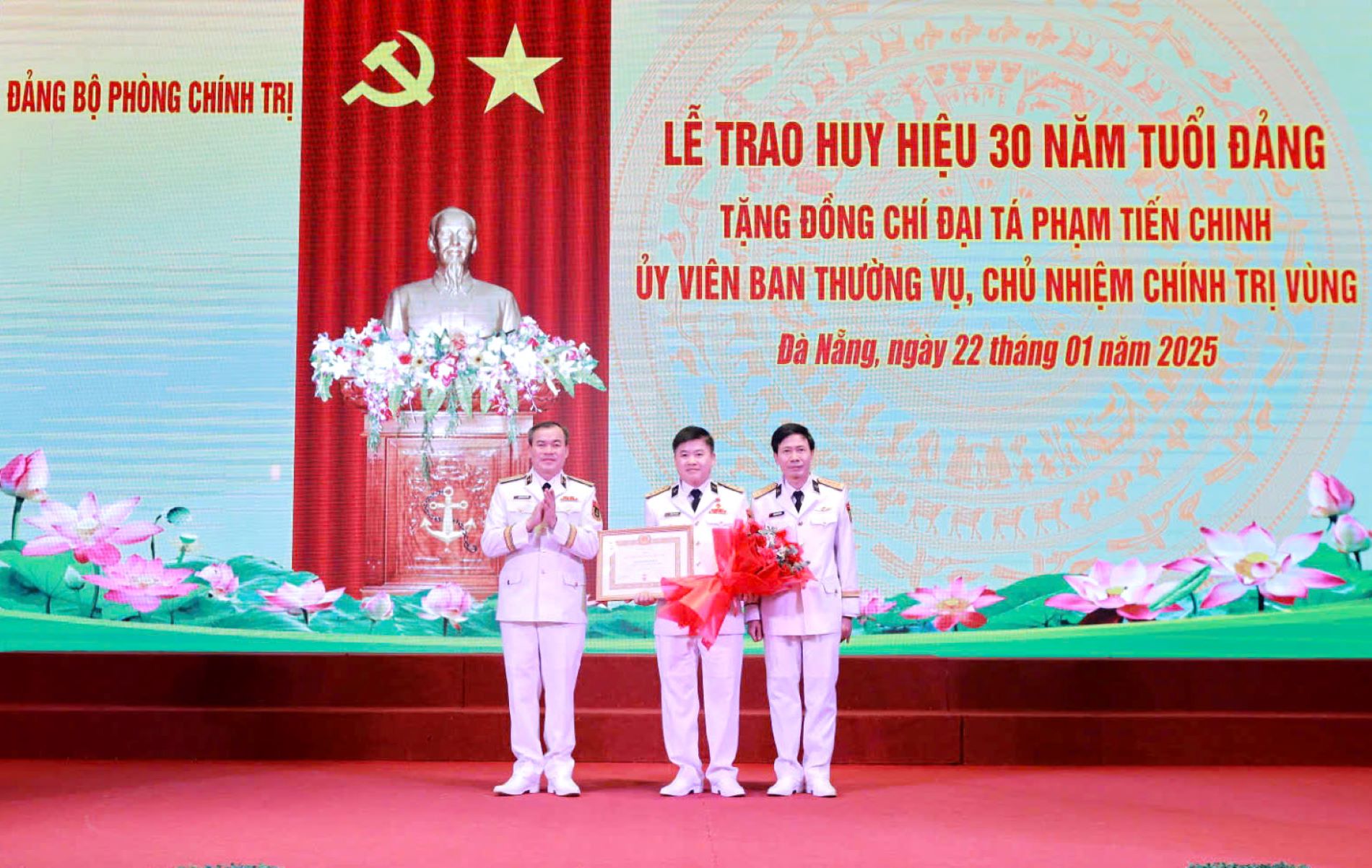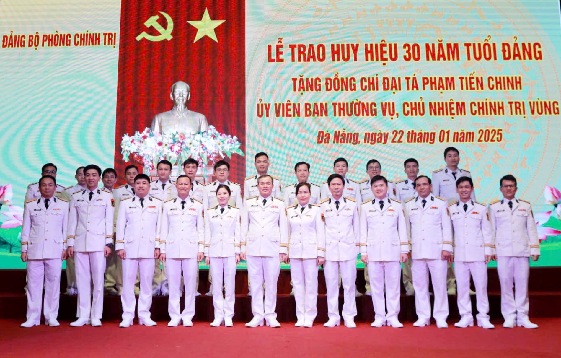 Chiều 22/1, tại Đà Nẵng, Vùng 3 Hải quân tổ chức Lễ trao tặng Huy hiệu 30 năm tuổi Đảng cho đồng chí Đại tá Phạm Tiến Chinh, Chủ nhiệm Chính trị Vùng. Tham dự Lễ trao Huy hiệu Đảng có Chuẩn Đô đốc Nguyễn Đăng Tiến, Bí thư Đảng ủy, Chính ủy Vùng; Đại tá Phạm Đình Thành, Phó Chính uỷ Vùng và cán bộ, đảng viên trong Đảng bộ Phòng Chính trị Vùng 3.