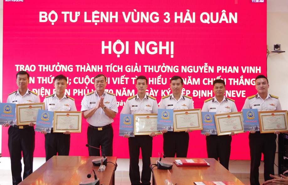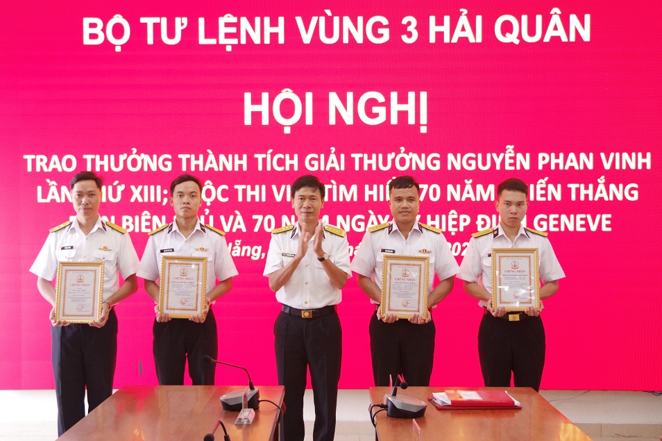 Sáng 15/4, tại Đà Nẵng, Bộ Tư lệnh Vùng 3 Hải quân tổ chức Hội nghị trao thưởng tập thể, cá nhân có thành tích tốt trong tham gia giải thưởng Nguyễn Phan Vinh. Đại tá Nguyễn Thiên Quân, Tư lệnh Vùng dự, chủ trì. Cùng dự có Chuẩn Đô đốc Nguyễn Đăng Tiến, Bí thư Đảng uỷ, Chính uỷ Vùng.