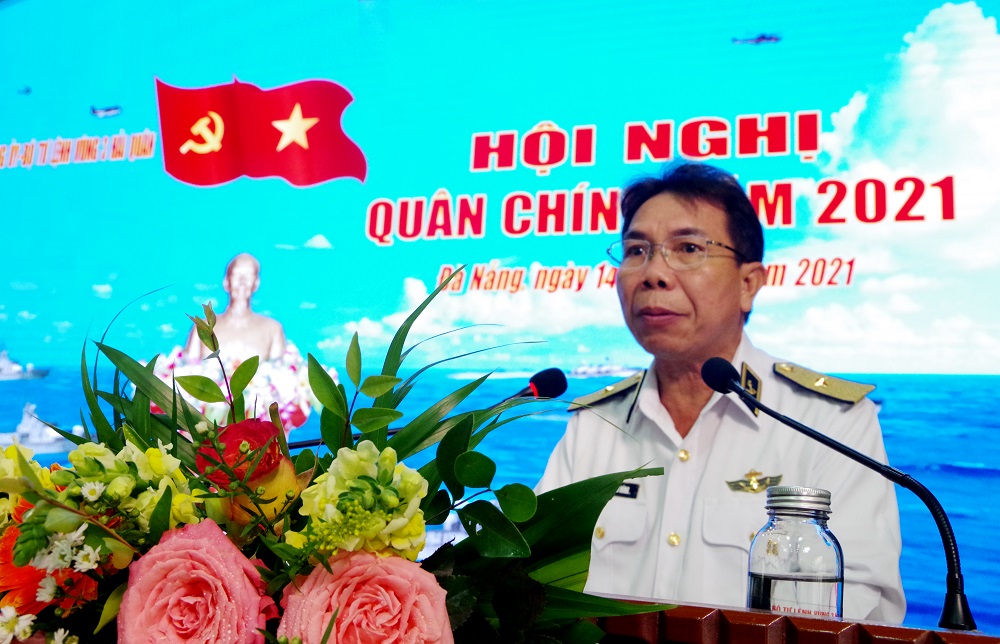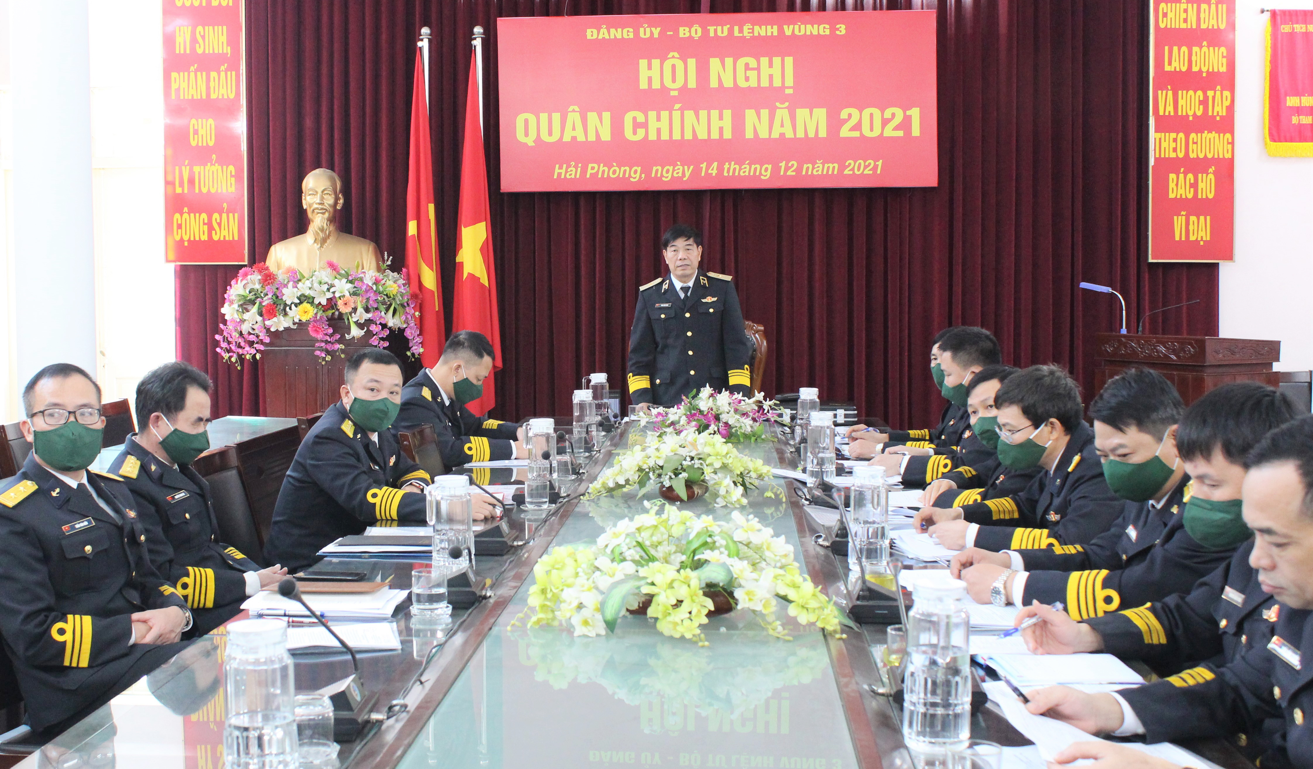 Chuẩn Đô đốc Phạm Văn Hùng, Tư lệnh Vùng 3 chủ trì hội nghị; Chuẩn Đô đốc Mai Trọng Định, Bí thư Đảng ủy, Chính ủy Vùng quán triệt Nghị quyết lãnh đạo thực hiện nhiệm vụ năm 2022 của Đảng ủy Vùng.