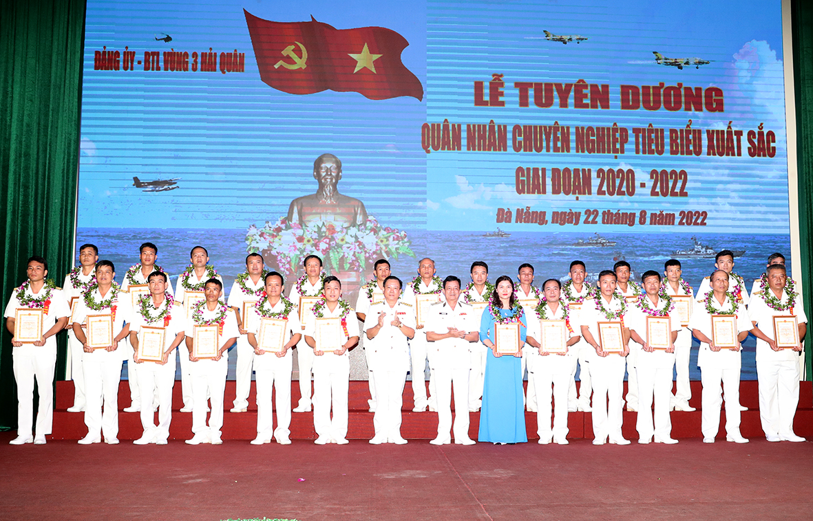 Chiều 22/8, tại Đà Nẵng, Đảng ủy, Bộ Tư lệnh Vùng 3 Hải quân tổ chức Lễ tuyên dương QNCN tiêu biểu xuất sắc năm 2022. Chuẩn Đô đốc Mai Trọng Định, Bí thư Đảng ủy, Chính ủy Vùng chủ trì.