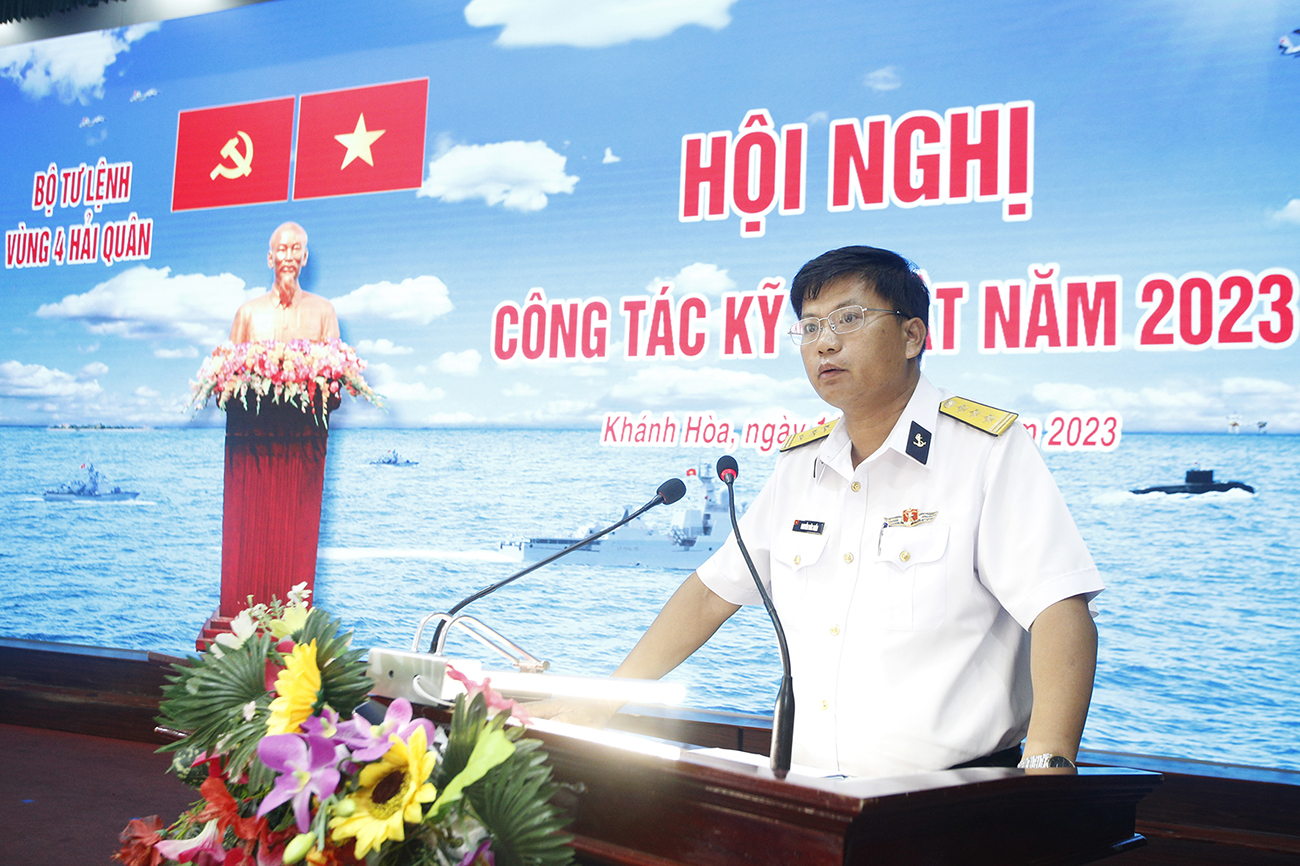 Chiều 11/12, tại TP. Cam Ranh, tỉnh Khánh Hòa, Bộ Tư lệnh Vùng 4 Hải quân tổ chức Hội nghị công tác kỹ thuật năm 2023. Đại tá Nguyễn Văn Bách, Tư lệnh Vùng 4 chủ trì. Thượng tá Nguyễn Đức Điền, Chủ nhiệm Kỹ thuật Vùng quán triệt Dự thảo Chỉ lệnh công tác kỹ thuật năm 2024 của Tư lệnh Vùng.