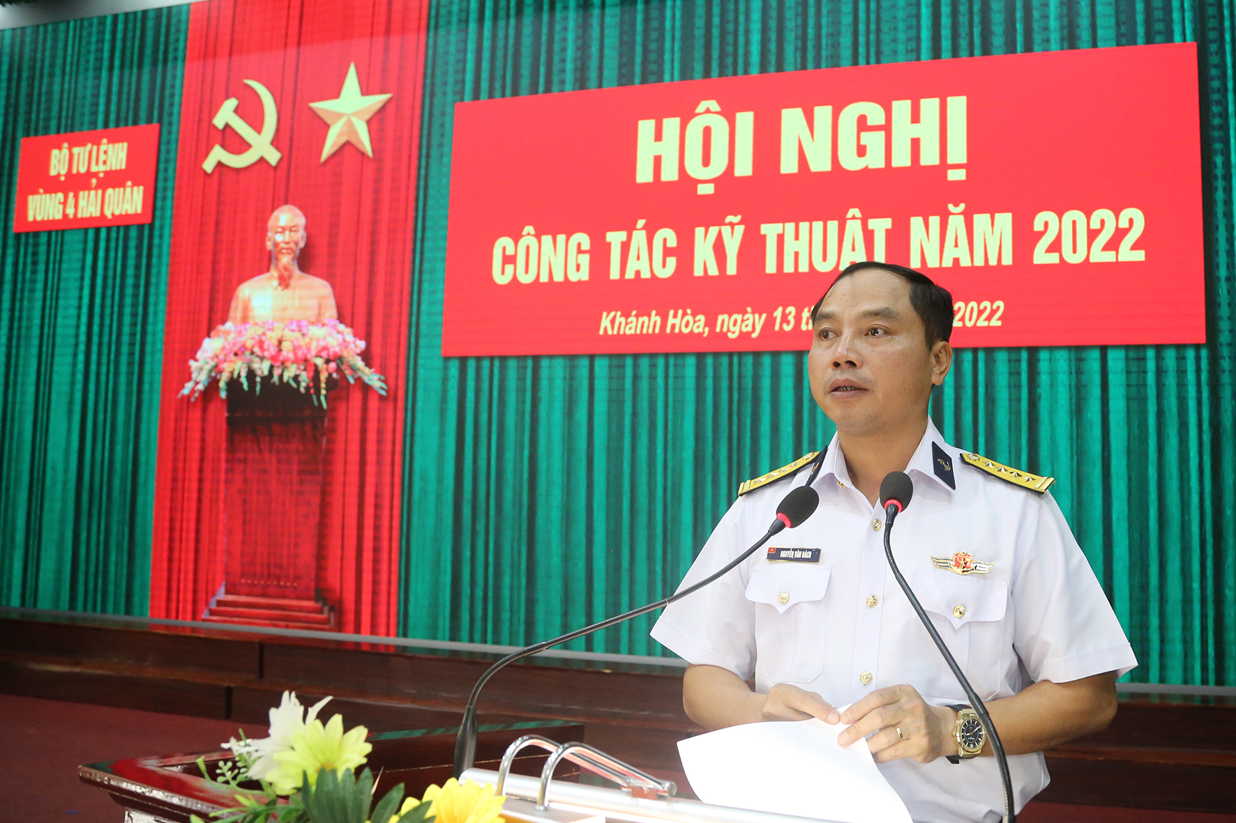 Chiều 13/12, tại TP. Cam Ranh, tỉnh Khánh Hòa, Bộ Tư lệnh Vùng 4 Hải quân tổ chức Hội nghị công tác kỹ thuật năm 2022. Đại tá Nguyễn Văn Bách, Phó Tư lệnh, Tham mưu trưởng Vùng chủ trì. Thượng tá Nguyễn Đức Điền, Chủ nhiệm Kỹ thuật Vùng quán triệt dự thảo Chỉ lệnh công tác kỹ thuật năm 2023 của Tư lệnh Vùng 4.