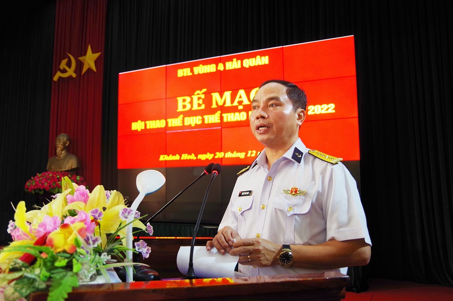 Chiều 20/12, tại TP. Cam Ranh, tỉnh Khánh Hoà, Bộ Tư lệnh Vùng 4 Hải quân tổ chức bế mạc Hội thao thể dục thể thao lần thứ 2 năm 2022. Đại tá Nguyễn Văn Bách, Phó Tư lệnh, Tham mưu trưởng Vùng dự và chủ trì.