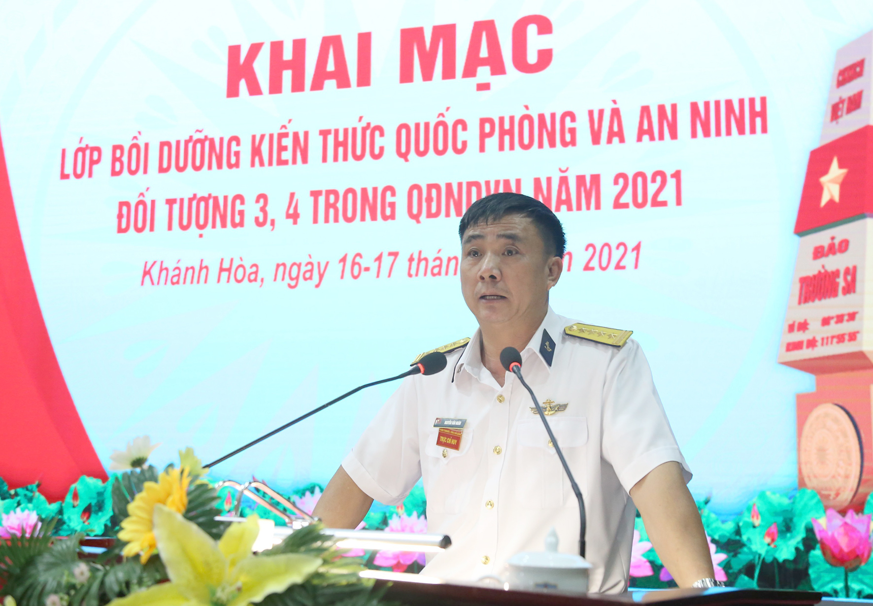 Sáng 16/11, tại TP.Cam Ranh, tỉnh Khánh Hòa, Vùng 4 Hải quân đã khai mạc lớp bồi dưỡng kiến thức quốc phòng và an ninh năm 2021 cho đối tượng 3, 4. Đại tá Nguyễn Văn Ngân, Phó Tham mưu trưởng chủ trì. Tham gia học tập có hơn 200 quân nhân và viên chức quốc phòng thuộc các cơ quan, đơn vị của Vùng.