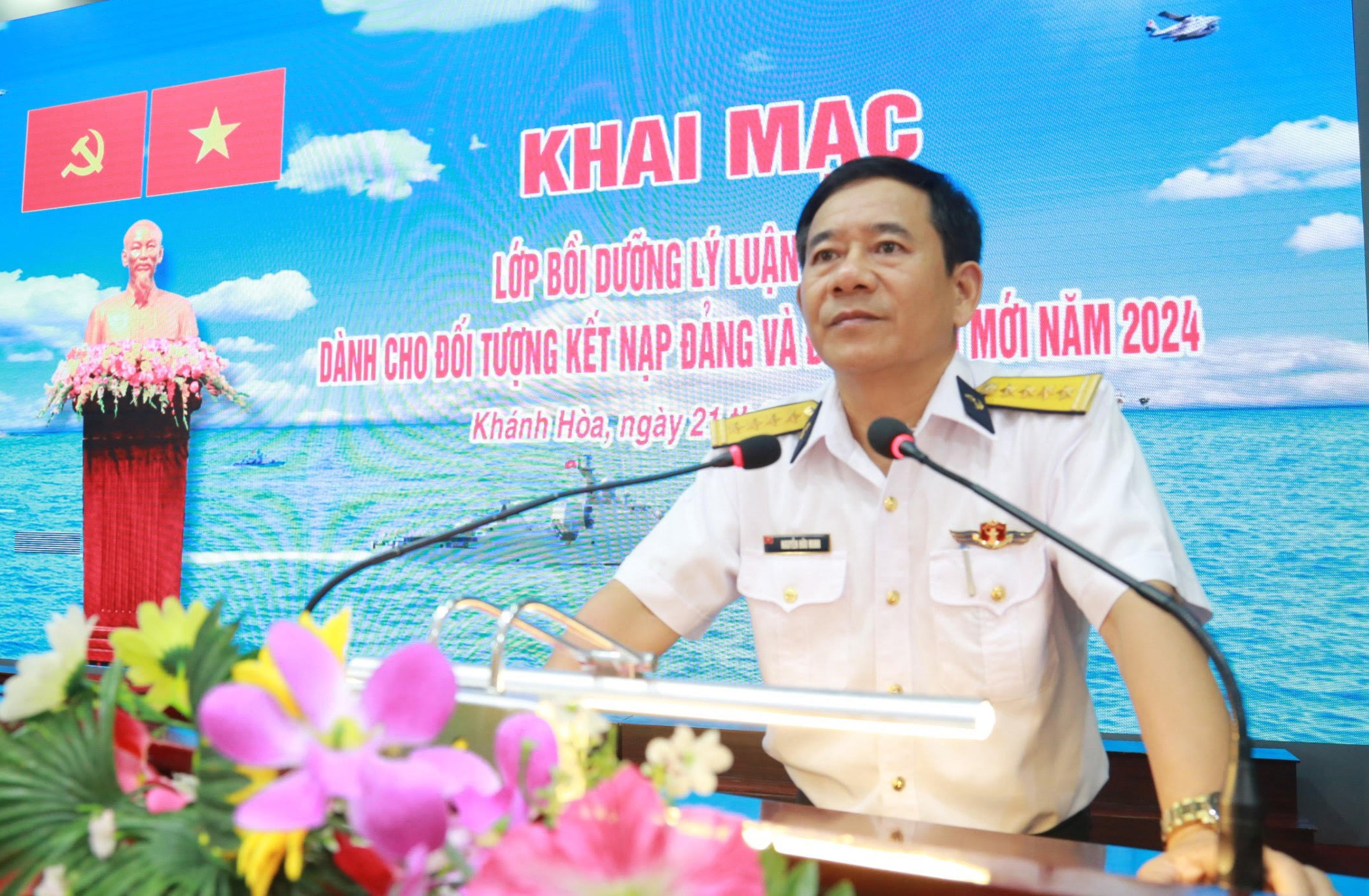 Sáng 21/5, tại TP. Cam Ranh, tỉnh Khánh Hòa, Đảng ủy Vùng 4 Hải quân tổ chức khai mạc lớp bồi dưỡng lý luận chính trị dành cho đối tượng kết nạp Đảng và đảng viên mới năm 2024. Đại tá Nguyễn Hữu Minh, Phó Chính ủy Vùng chủ trì.