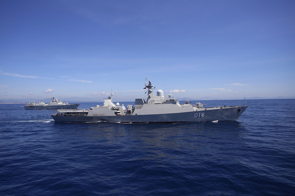 Biên đội tàu hộ vệ tên lửa huấn luyện trên biển. Ảnh: PV