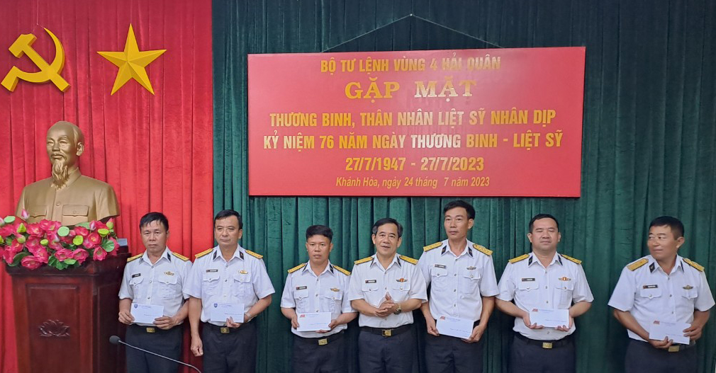 Chiều 24/7, tại TP. Cam Ranh, tỉnh Khánh Hòa, Vùng 4 Hải quân tổ chức gặp mặt thương binh, thân nhân liệt sĩ nhân dịp kỷ niệm 76 năm Ngày thương binh-liệt sĩ (27/7/1947 - 27/7/2023). Đại tá Nguyễn Hữu Minh, Phó Chính ủy Vùng dự và chủ trì.