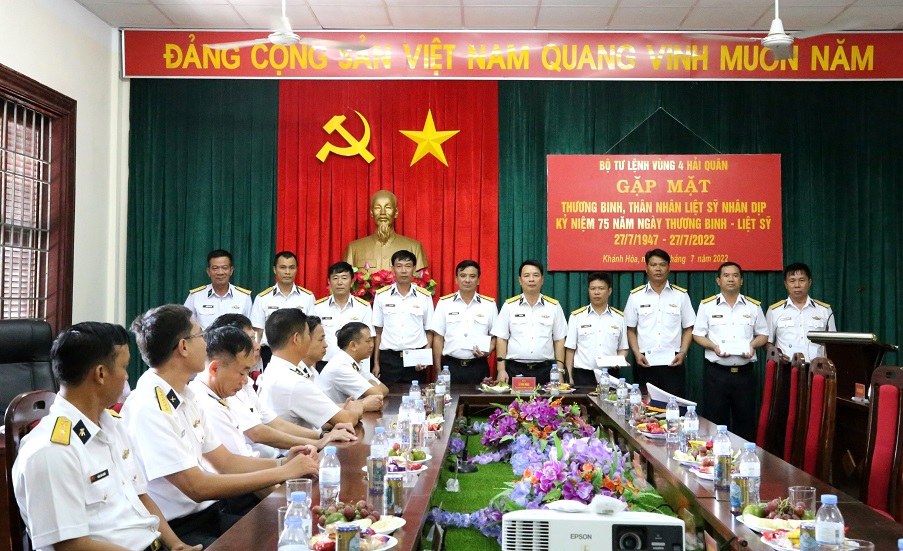 Dịp này, Bộ Tư lệnh Vùng đã trao tặng mỗi thương binh một phần quà trị giá 3, 5 triệu đồng và thân nhân liệt sĩ một phần quà trị giá 3,3 triệu đồng (quà của Chủ tịch nước, Bộ Tư lệnh Quân chủng Hải quân, Bộ Tư lệnh Vùng 4)...