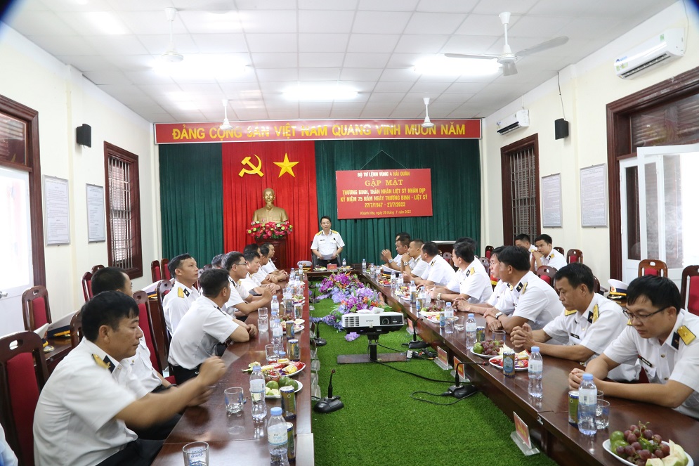 Chiều 26/7, tại TP. Cam Ranh, tỉnh Khánh Hòa, Vùng 4 Hải quân tổ chức gặp mặt thương binh, thân nhân liệt sĩ nhân dịp Kỷ niệm 75 năm Ngày thương binh liệt sĩ. Đại tá Lã Văn Hùng, Phó Chính ủy Vùng dự và chủ trì buổi gặp mặt.