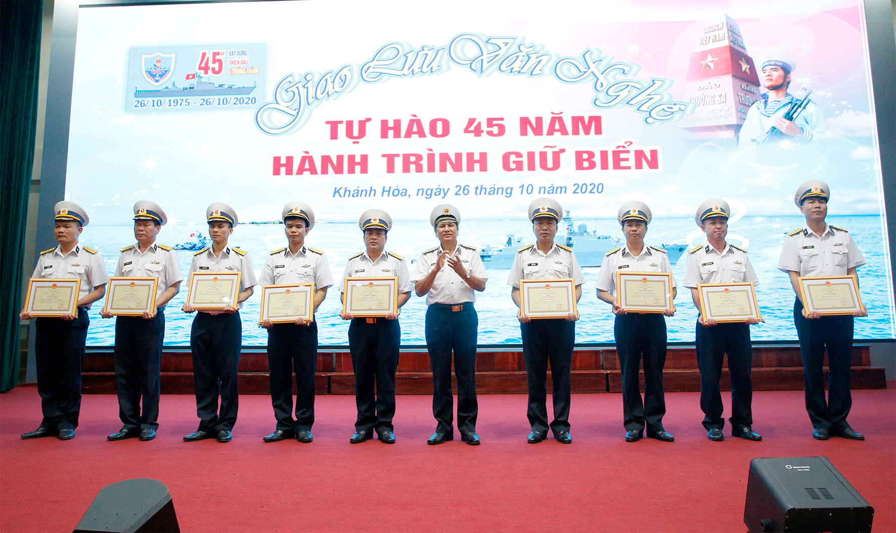 Tại buổi giao lưu văn nghệ, Bộ Tư lệnh Vùng đã trao thưởng cho các tập thể và cá nhân đạt thành tích cao trong Hội thi Nội san và Tìm hiểu truyền thống 45 năm Vùng 4 Hải quân.