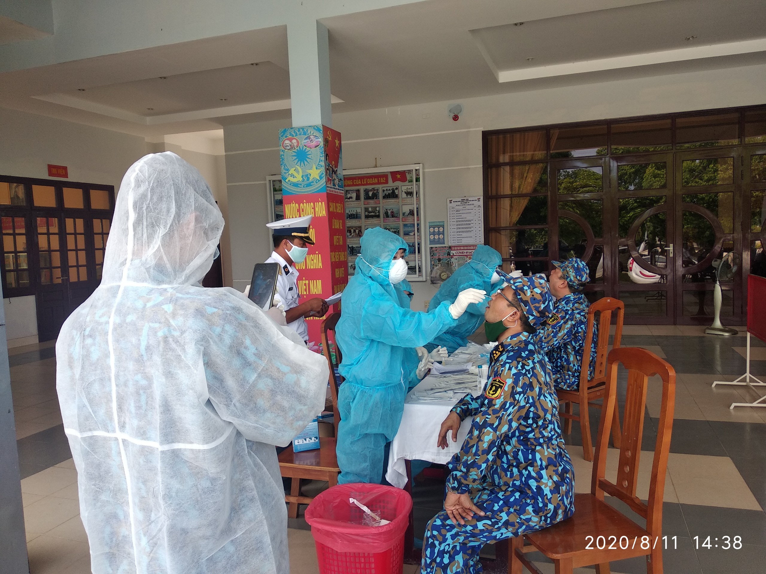 Ngày 11-8 tại TP. Cam Ranh, tỉnh Khánh Hòa, Bộ Tư lệnh Vùng 4 Hải quân đã phối hợp với Trung tâm Kiểm soát bệnh tật tỉnh Khánh Hòa lấy mẫu xét nghiệm Covid-19 cho quân nhân của đơn vị.