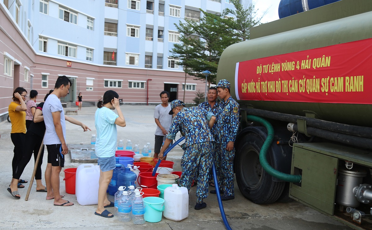 Chiều 26-5, Vùng 4 Hải quân đã tổ chức cấp hơn 50 nghìn lít nước ngọt cho các gia đình trong Khu đô thị Căn cứ Quân sự Cam Ranh nhằm khắc phục hạn hán, thiếu nước sinh hoạt.