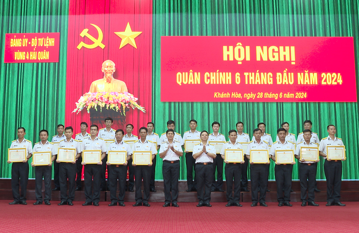 Dịp này, thủ trưởng Bộ Tư lệnh Vùng 4 Hải quân đã trao Bằng khen của Bộ Quốc phòng tặng các tập thể, cá nhân có thành tích liên tục xuất sắc giai đoạn 2022-2023.