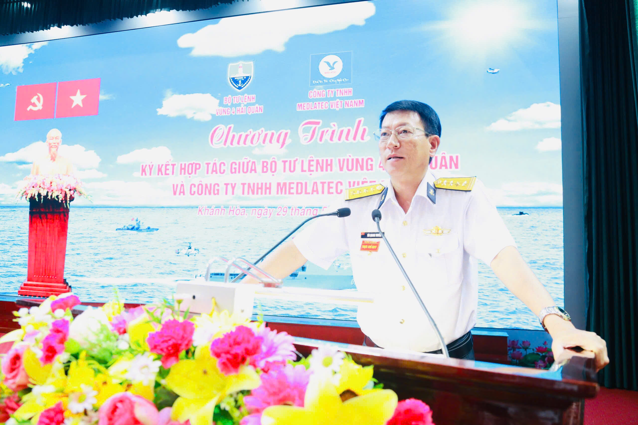 Chiều 29/5, tại TP. Cam Ranh, tỉnh Khánh Hòa, Bộ Tư lệnh Vùng 4 Hải quân và Công ty TNHH Medlatec Việt Nam ký kết thỏa thuận hợp tác chuyên môn phi lợi nhuận nhằm nâng cao chất lượng chăm sóc sức khỏe cho cán bộ, chiến sĩ và nhân dân. Đại tá Bùi Quang Thuyên, Phó Tư lệnh Vùng 4 Hải quân dự, chủ trì.