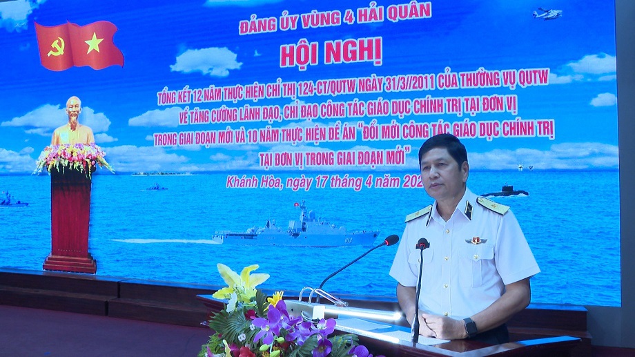 Chiều 17/4, tại TP. Cam Ranh, tỉnh Khánh Hoà, Đảng ủy Vùng 4 Hải quân tổ chức Hội nghị tổng kết 12 năm thực hiện Chỉ thị 124-CT/QUTW ngày 31/3/2011 của Thường vụ Quân ủy Trung ương về tăng cường lãnh đạo, chỉ đạo công tác giáo dục chính trị (GDCT) tại đơn vị trong giai đoạn mới; 10 năm thực hiện Đề án “Đổi mới công tác GDCT tại đơn vị trong giai đoạn mới”. Chuẩn Đô đốc Ngô Văn Thuân, Bí thư Đảng uỷ, Chính uỷ Vùng chủ trì.