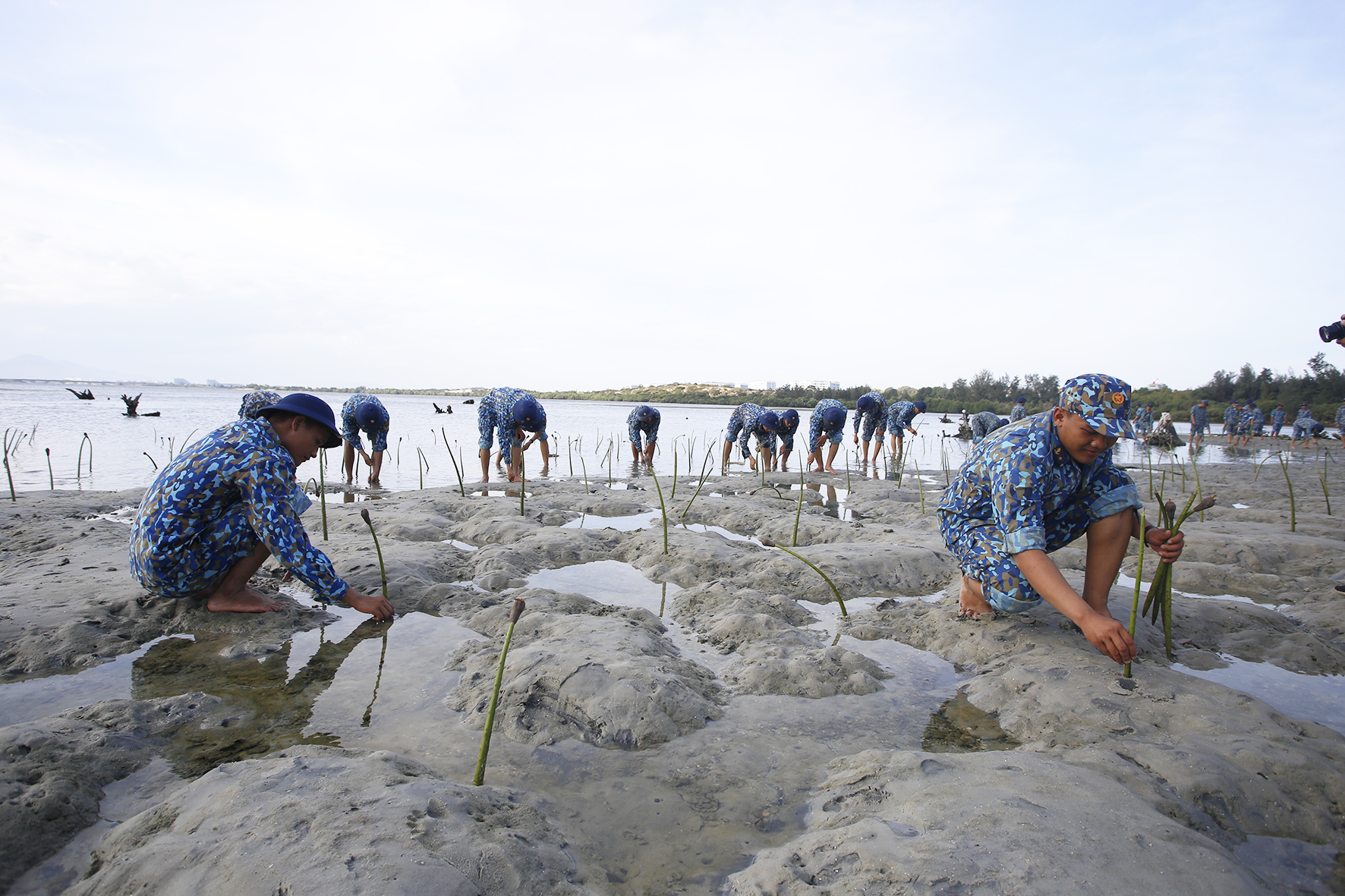 Đoàn viên, thanh niên Vùng 4 trồng cây đước khu vực ven biển trong căn cứ Cam Ranh