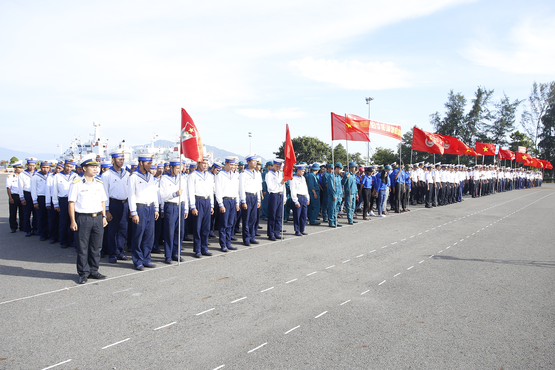 Chuẩn Đô đốc Ngô Văn Thuân, Phó Chủ nhiệm Chính trị Hải quân dự và chỉ đạo buổi lễ. Tham dự còn có các đồng chí trong Đảng ủy, Bộ Tư lệnh Vùng 4 Hải quân; Ban Thanh niên Quân đội, Hải quân; Tỉnh đoàn Khánh Hòa, Thành đoàn Cam Ranh; đại diện các đơn vị Hải quân trên địa bàn tỉnh Khánh Hòa và gần 1.000 đoàn viên, thanh niên các cơ quan đơn vị thuộc Vùng 4 Hải quân và Thành đoàn Cam Ranh.