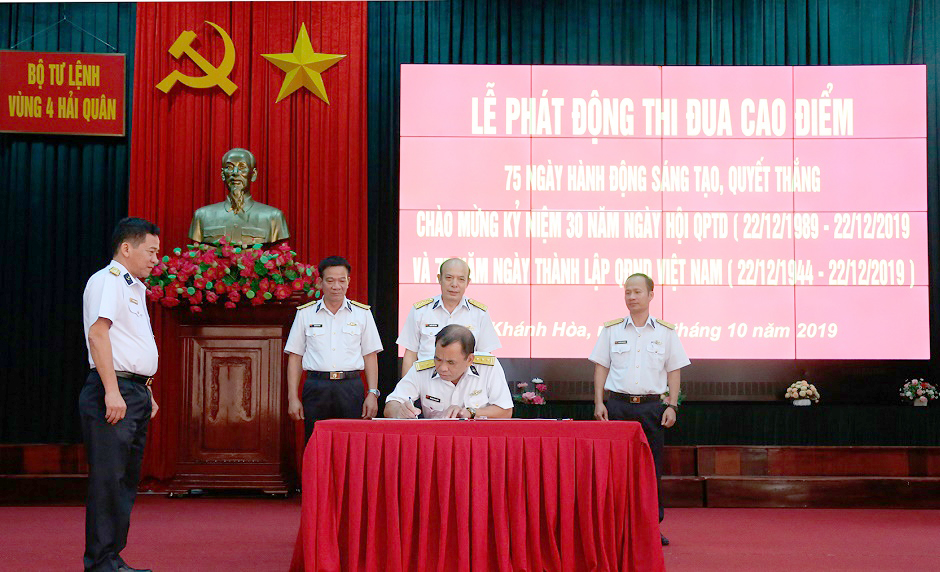 Sáng 7-10, các cơ quan, đơn vị thuộc Vùng 4 Hải quân đã tổ chức Phát động thi đua cao điểm “75 ngày hành động sáng tạo, quyết thắng” kỷ niệm 30 năm Ngày hội Quốc phòng toàn dân (22-12-1989 - 22-12-2019), 75 năm Ngày thành lập Quân đội nhân dân Việt Nam (22-12-1944 - 22-12-2019), 44 năm Ngày thành lập Vùng 4 Hải quân và chào mừng Đại hội thi đua Quyết thắng Quân chủng Hải quân.