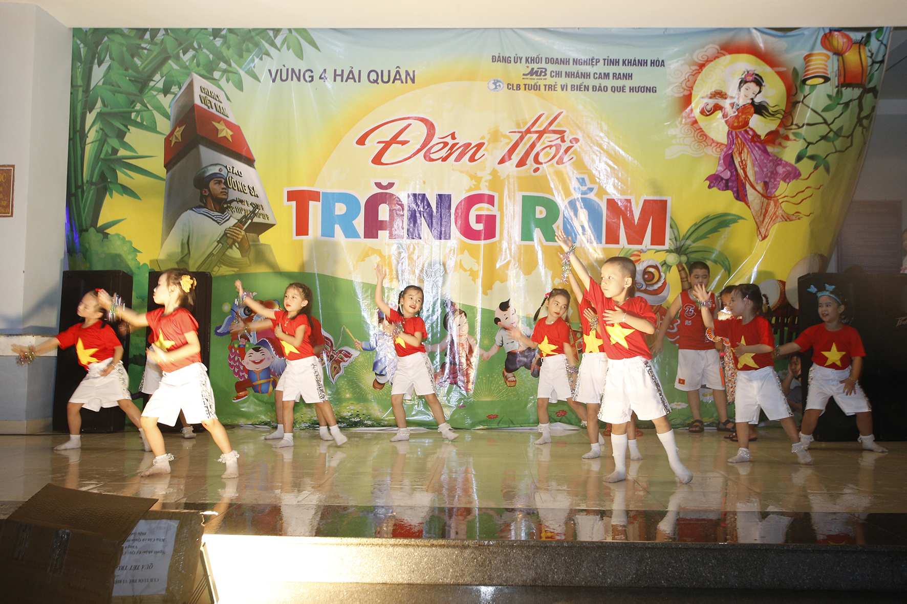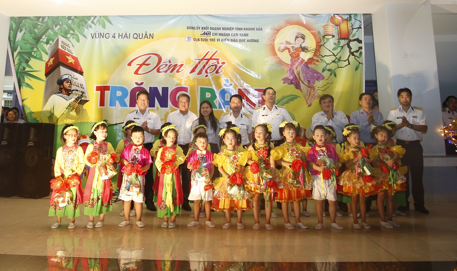 Tối 12-9, tại TP. Cam Ranh, tỉnh Khánh Hòa, Vùng 4 Hải quân phối hợp với Đảng ủy Khối Doanh nghiệp tỉnh Khánh Hòa, Ngân hàng MB Cam Ranh, Câu lạc bộ "Tuổi trẻ vì biển, đảo quê hương" tổ chức Tết Trung thu và tặng quà con các quân nhân công tác tại Căn cứ quân sự Cam Ranh và huyện đảo Trường Sa.