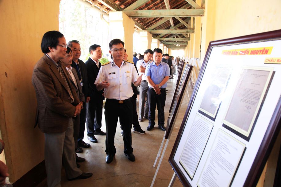 Cán bộ, giảng viên Trường Cao đẳng Đà Lạt nghe giới thiệu triển lãm những bằng chứng lịch sử, cơ sở pháp lý khẳng định chủ quyền lãnh thổ của Việt Nam đối với hai quần đảo Hoàng Sa, Trường Sa