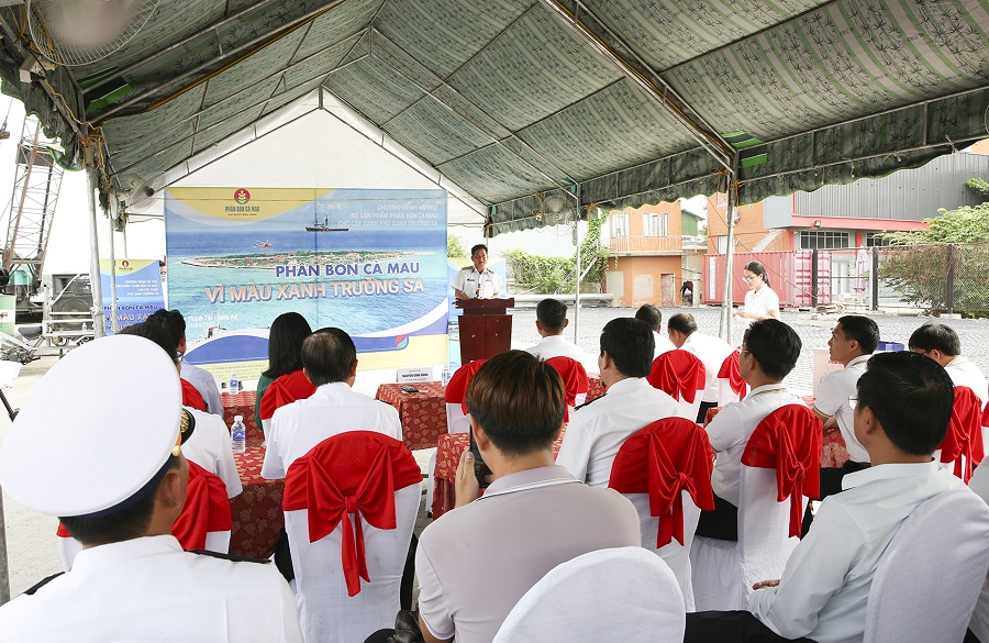 Phát biểu tại chương trình, Chuẩn Đô đốc Nguyễn Đình Hùng cảm ơn tập thể cán bộ, nhân viên PVCFC đã hướng về biển, đảo quê hương bằng một chương trình rất thiết thực, ý nghĩa đồng thời khẳng định số phân bón này đơn vị sẽ nhanh chóng triển khai vận chuyển ra các đảo, tiến hành cải tạo môi trường sống cho cây xanh và trồng các loại rau xanh phục vụ đời sống cán bộ, chiến sĩ và nhân dân huyện đảo.