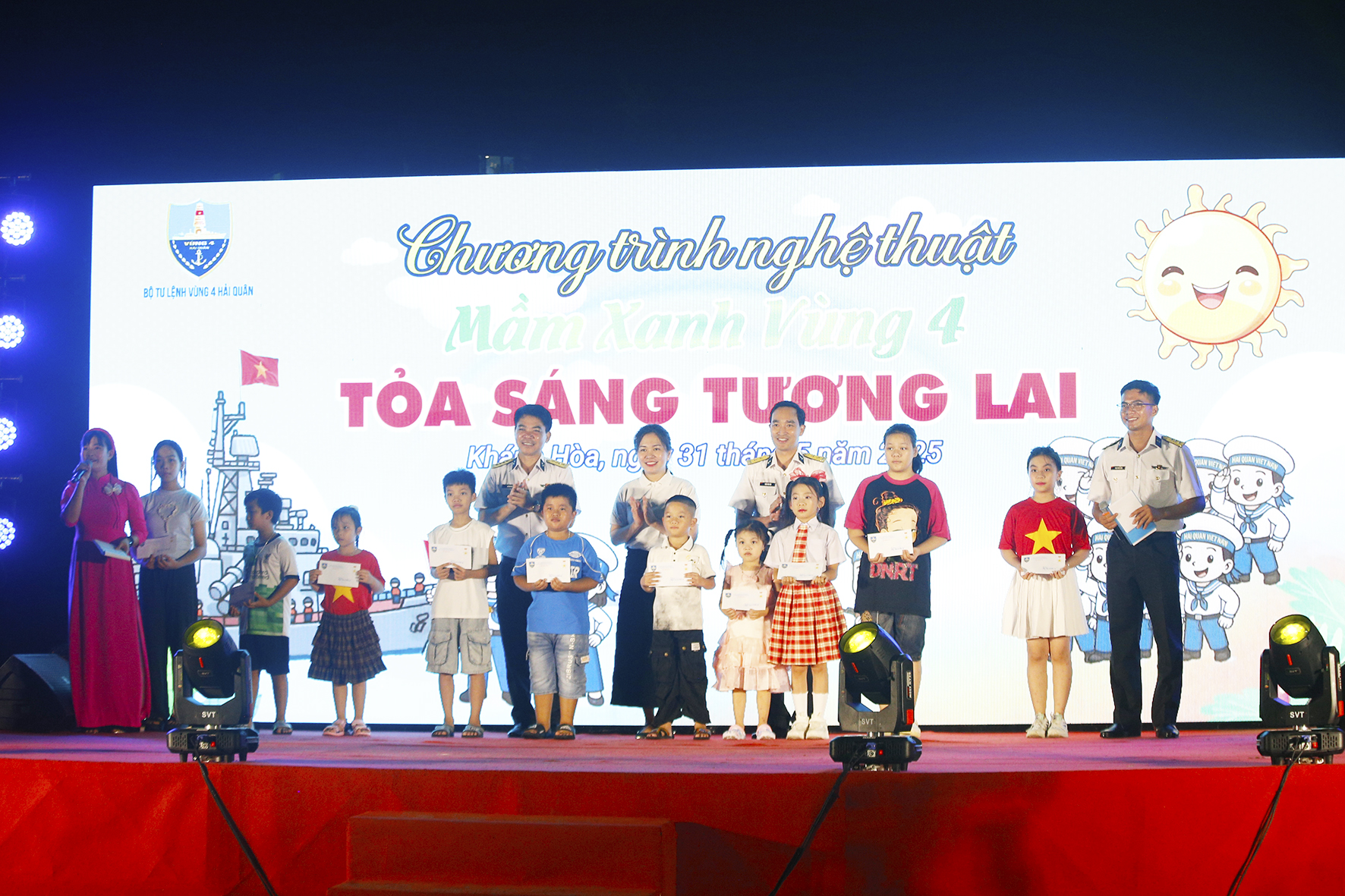 *Tối cùng ngày, tại Khu Đô thị Căn cứ quân sự Cam Ranh, Vùng 4 Hải quân tổ chức Chương trình nghệ thuật “Mầm xanh Vùng 4-Tỏa sáng tương lai”.
