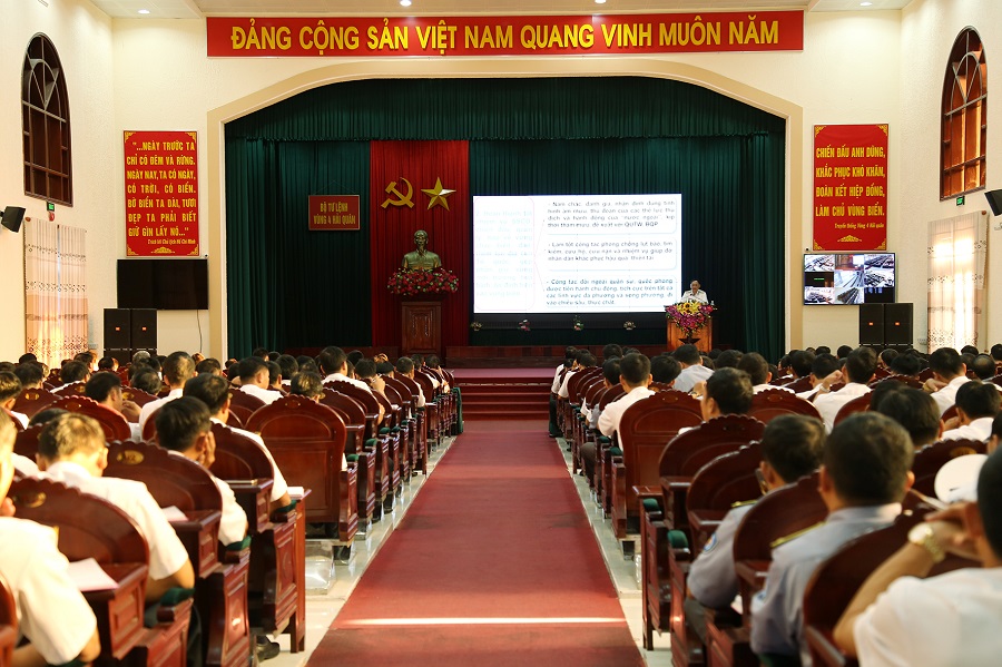 Chuẩn Đô đốc Nguyễn Đức Vượng, Bí thư Đảng ủy, Chính ủy Vùng 4 trực tiếp lên lớp chuyên đề: “Nêu cao ý thức trách nhiệm, phát huy phẩm chất “Bộ đội Cụ Hồ-Người chiến sĩ Hải quân”, hoàn thành xuất sắc nhiệm vụ năm 2019”.