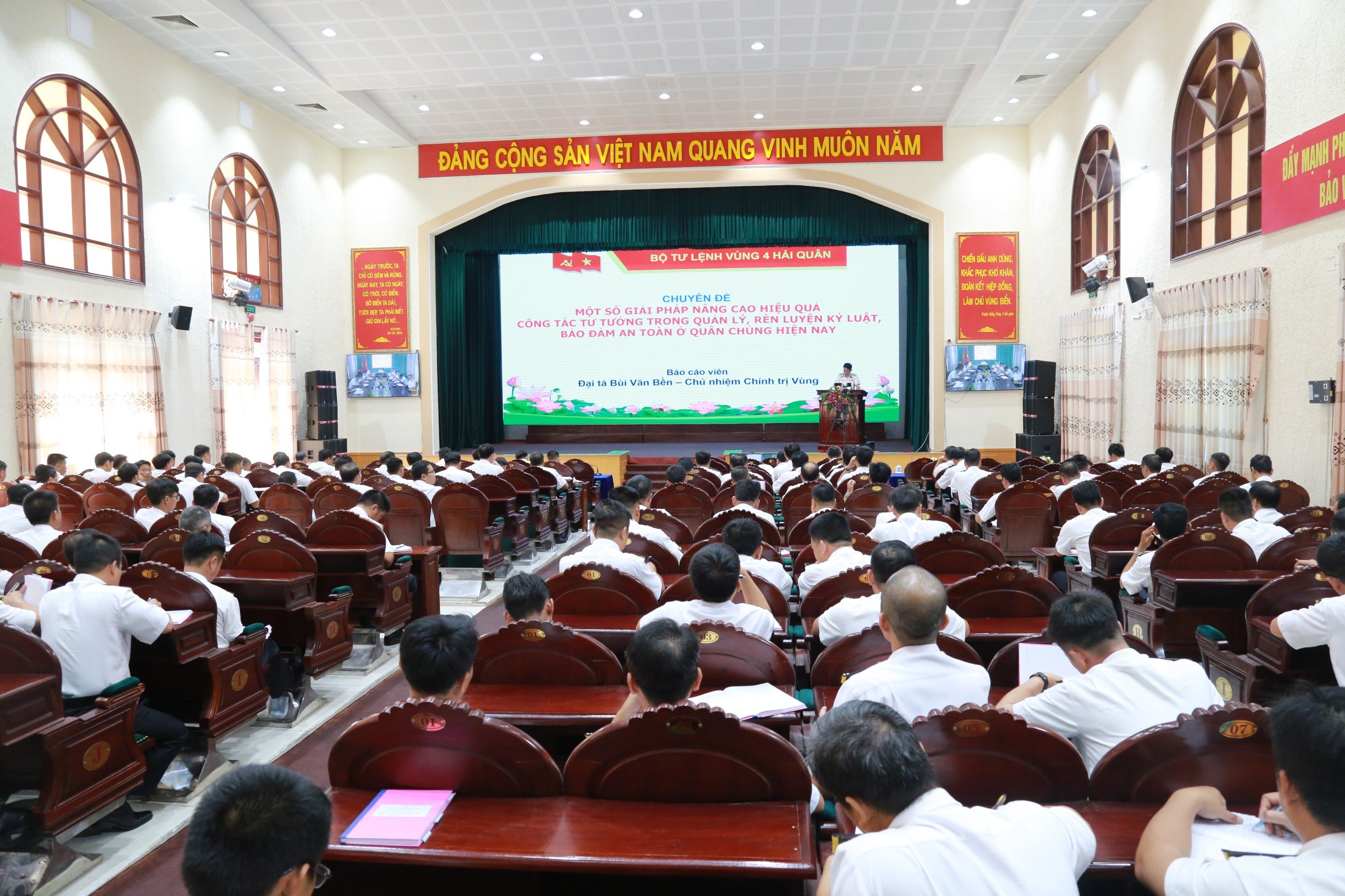 Tại hội nghị, các đồng chí sĩ quan đã được nghiên cứu, học tập 4 chuyên đề: Đẩy mạnh học tập và làm theo tư tưởng Hồ Chí Minh về thực hành dân chủ và kỷ luật trong Quân đội Nhân dân Việt Nam; Đẩy mạnh học tập và làm theo tư tưởng Hồ Chí Minh về kiểm tra, giám sát và thi hành kỷ luật đảng ở các tổ chức cơ sở đảng trong Đảng bộ Quân đội hiện nay; Một số giải pháp nâng cao hiệu quả công tác tư tưởng trong quản lý, rèn luyện kỷ luật, bảo đảm an toàn ở Quân chủng Hải quân hiện nay và chuyên đề Nâng cao nhận thức, trách nhiệm của quân nhân đối với gia đình, đơn vị, đồng chí, đồng đội.