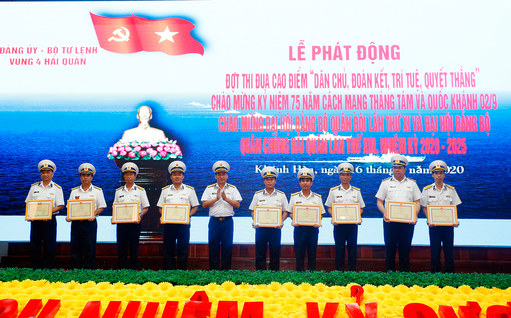 Đảng ủy, Bộ Tư lệnh Vùng 4 đã phát động đợt thi đua cao điểm với chủ đề “Dân chủ, đoàn kết, trí tuệ, quyết thắng” kỷ niệm 75 năm Cách mạng tháng Tám và Quốc khánh 2-9, chào mừng Đại hội đại biểu Đảng bộ Quân đội lần thứ XI, Đại hội đại biểu Đảng bộ Quân chủng Hải quân lần thứ XIII, nhiệm kỳ 2020-2025.