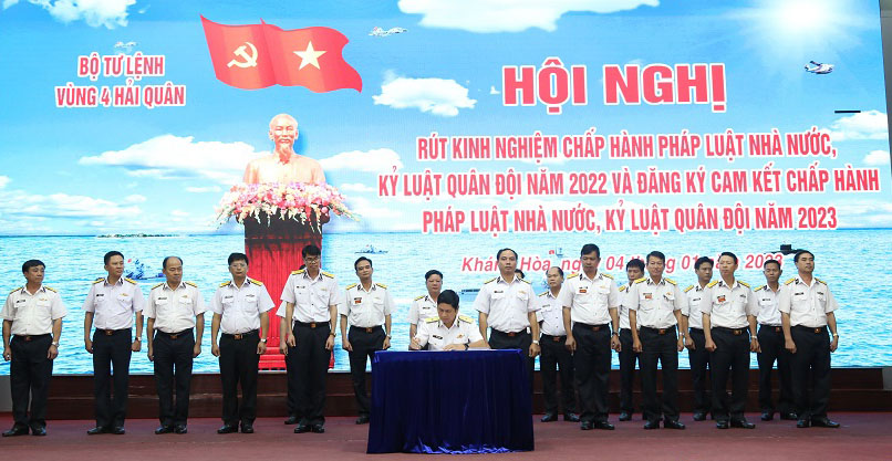 Chiều 4/1, tại TP. Cam Ranh, tỉnh Khánh Hòa, Bộ Tư lệnh Vùng 4 Hải quân tổ chức Hội nghị rút kinh nghiệm chấp hành pháp luật Nhà nước, kỷ luật Quân đội năm 2022. Dự, chỉ đạo có Chuẩn Đô đốc Ngô Văn Thuân, Bí thư Đảng ủy, Chính ủy Vùng. Đại tá Nguyễn Văn Bách, Phó Tư lệnh, Tham mưu trưởng Vùng chủ trì.