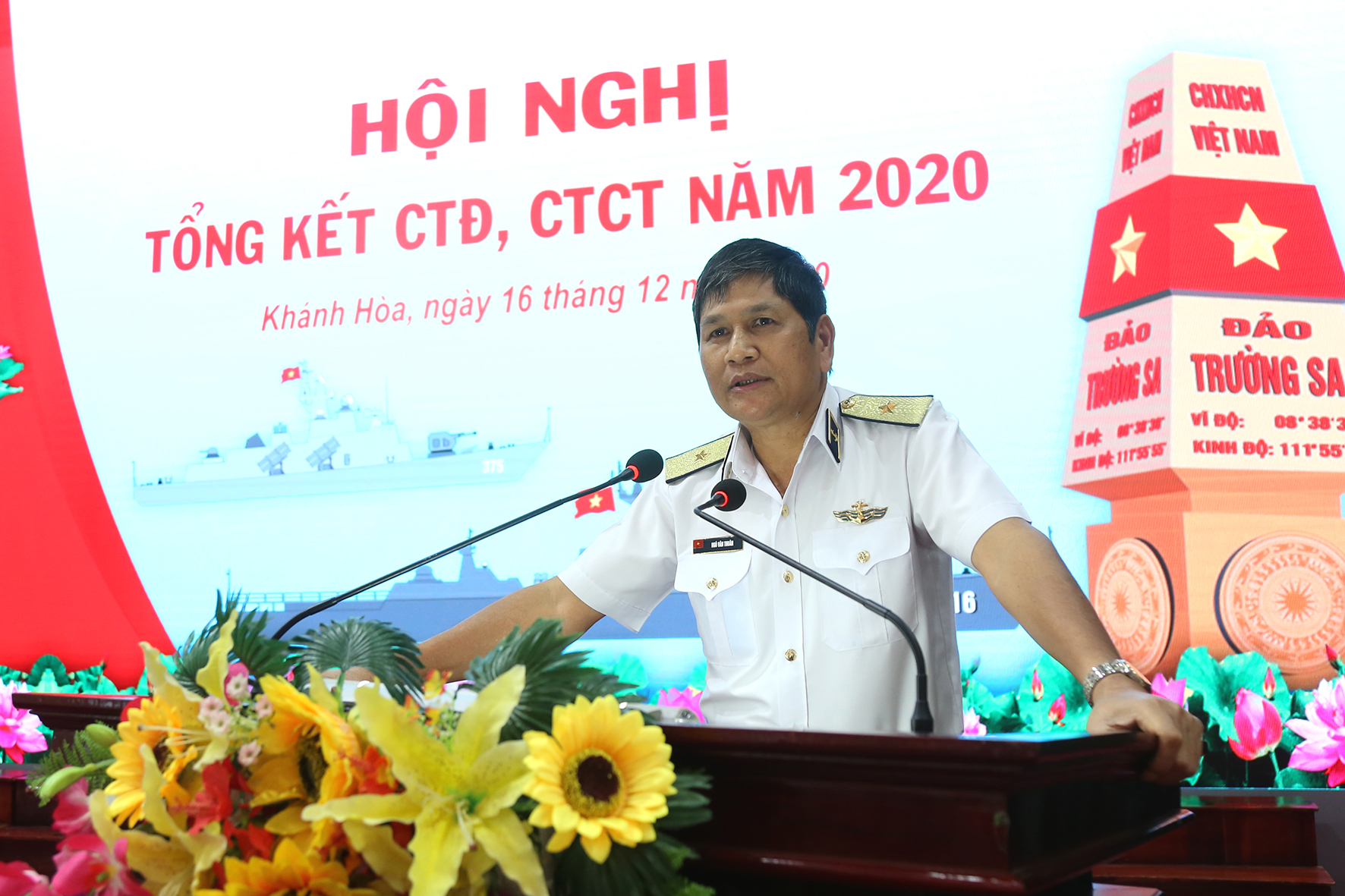 Sáng 16-12, tại TP. Cam Ranh, tỉnh Khánh Hoà, Vùng 4 Hải quân tổ chức Hội nghị Tổng kết công tác đảng, công tác chính trị (CTĐ, CTCT) năm 2020. Chuẩn Đô đốc Ngô Văn Thuân, Bí thư Đảng uỷ, Chính ủy Vùng chủ trì.