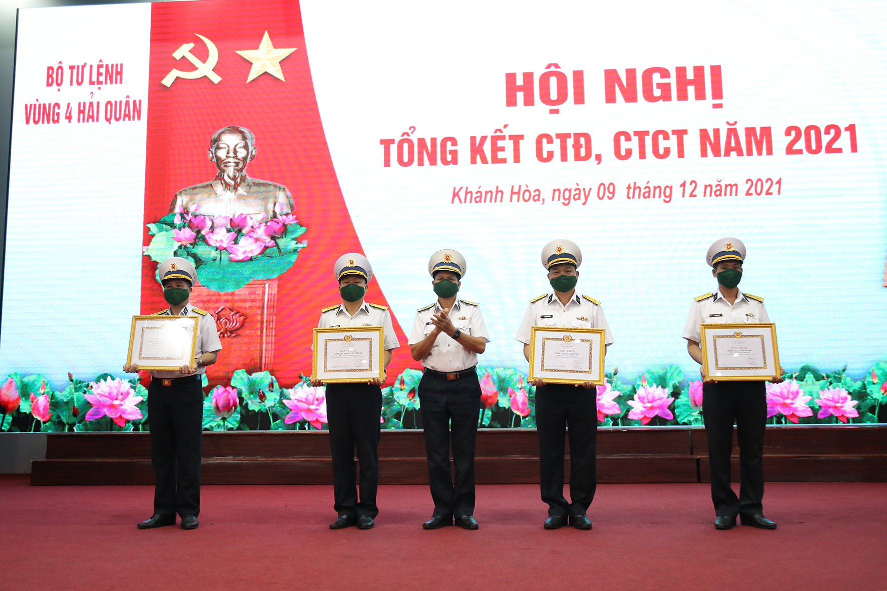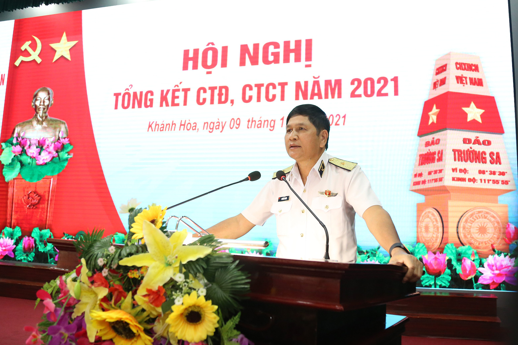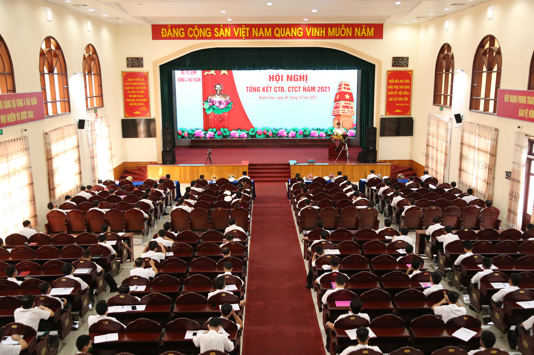 Chiều 9/12, tại TP. Cam Ranh, tỉnh Khánh Hoà, Vùng 4 Hải quân tổ chức Hội nghị tổng kết CTĐ, CTCT năm 2021. Chuẩn Đô đốc Ngô Văn Thuân, Bí thư Đảng ủy, Chính ủy Vùng chủ trì.