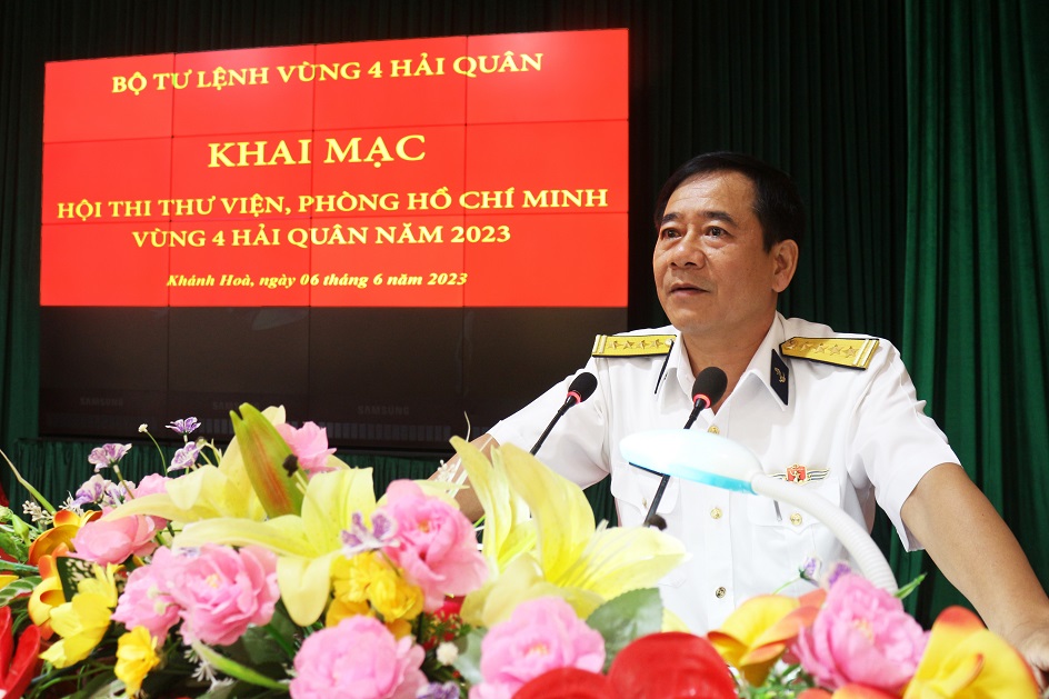 Sáng 6/6, tại TP. Cam Ranh, tỉnh Khánh Hoà, Vùng 4 Hải quân tổ chức khai mạc Hội thi thư viện, Phòng Hồ Chí Minh năm 2023. Đại tá Nguyễn Hữu Minh, Phó Chính ủy Vùng, Trưởng ban tổ chức hội thi dự và chỉ đạo.