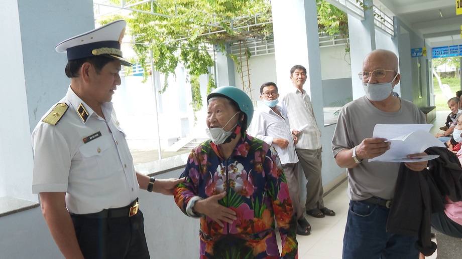 Thực hiện chương trình kết hợp quân, dân y chăm sóc sức khỏe cho người dân năm 2022, từ 12 đến 14/10, Vùng 4 Hải quân cùng với các bác sĩ, dược sỹ thuộc Phòng Quân y, Cục Hậu cần Hải quân tổ chức khám, cấp thuốc, tư vấn sức khỏe miễn phí cho các gia đình chính sách tại phường Cam Nghĩa, TP. Cam Ranh, tỉnh Khánh Hoà.