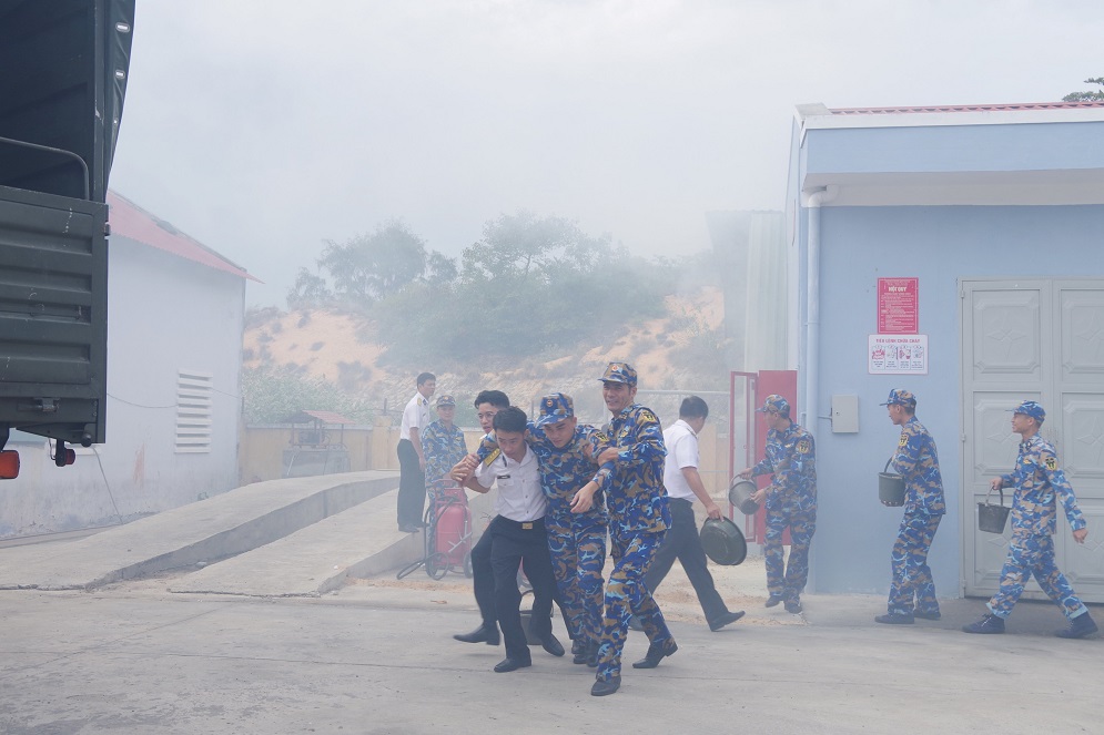 Cán bộ, chiến sĩ Lữ đoàn 162 luyện tập xử lý tình huống phòng chống cháy nổ