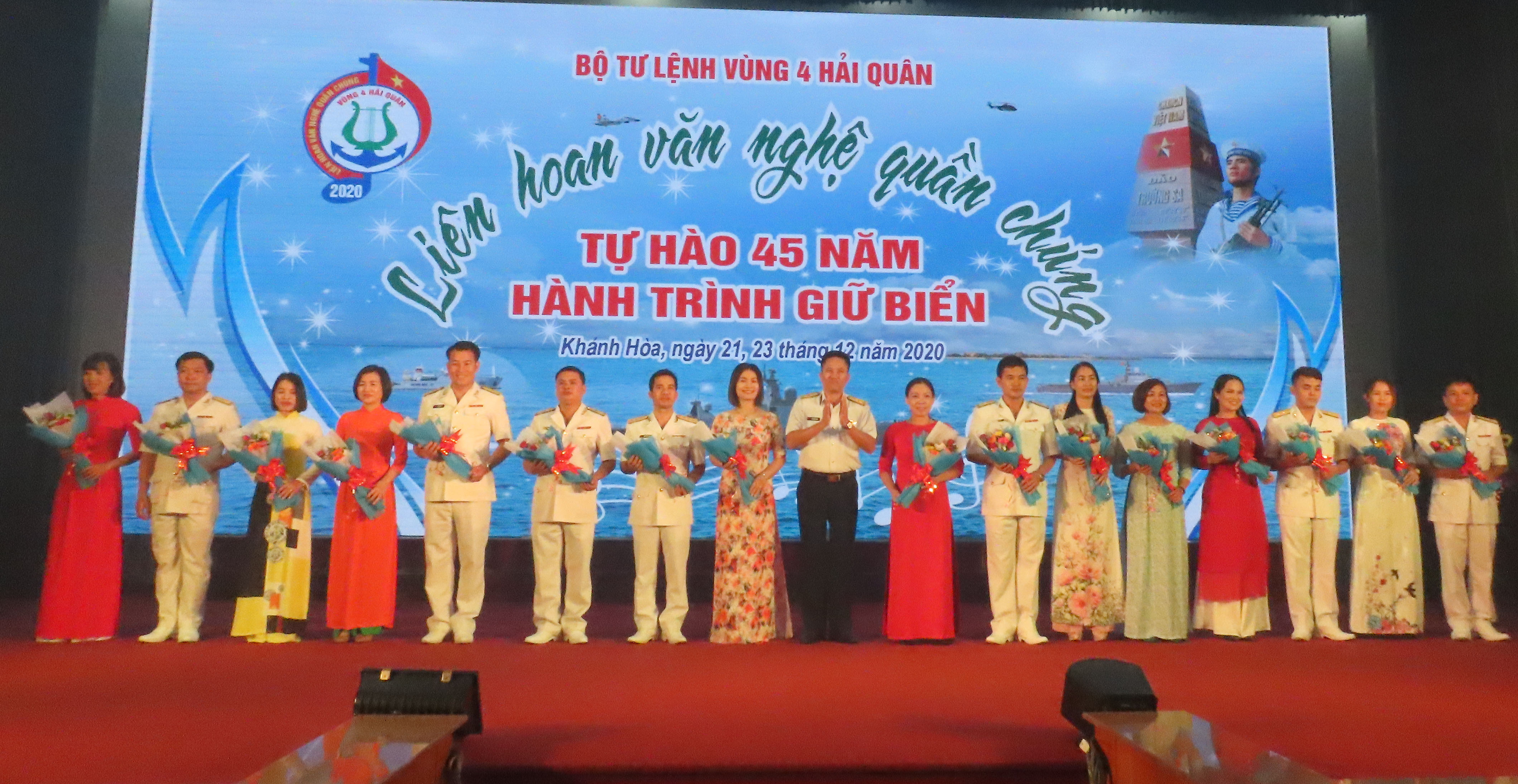 Sáng 21-12, tại TP. Cam Ranh, tỉnh Khánh Hòa, Vùng 4 Hải quân tổ chức khai mạc Liên hoan văn nghệ quần chúng năm 2020 với chủ đề “Tự hào 45 năm hành trình giữ biển”. Dự lễ có thủ trưởng Bộ Tư lệnh Vùng; lãnh đạo, chỉ huy các cơ quan, đơn vị trực thuộc.