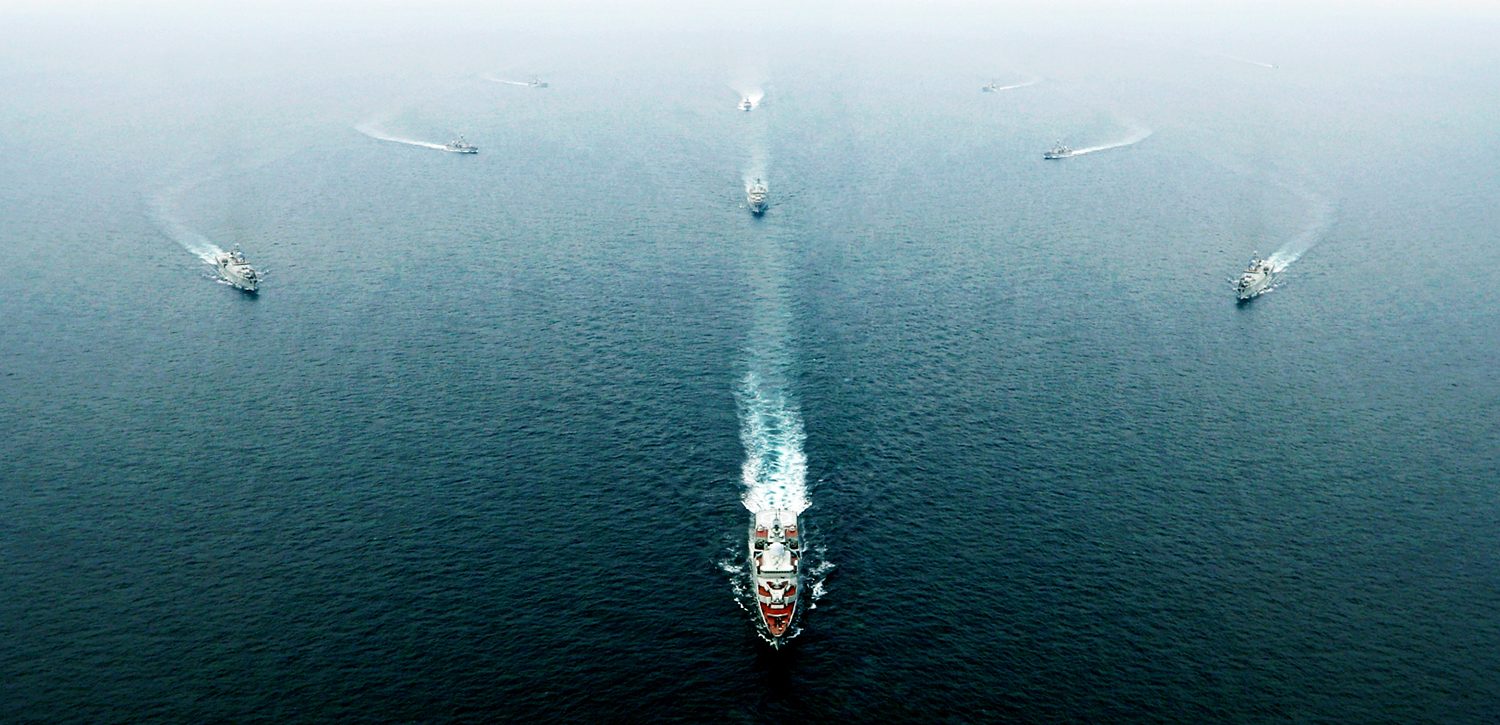 Các tàu Vùng 4 Hải quân luyện tập vận động đội hình trên biển. Ảnh: Đức Thu