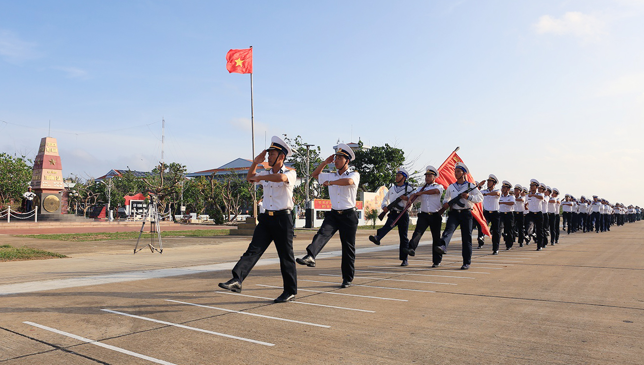 Duyệt đội ngũ ở thị trấn Trường Sa. Ảnh: Hoàng Minh