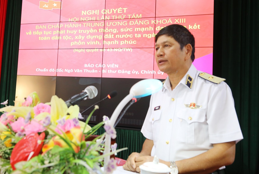 Tại hội nghị, Chuẩn Đô đốc Ngô Văn Thuân, Bí thư Đảng ủy, Chính ủy Vùng và các đồng chí trong Ban Thường vụ Đảng ủy Vùng đã quán triệt các chuyên đề về: Chiến lược bảo vệ Tổ quốc trong tình hình mới; tiếp tục đổi mới, nâng cao chất lượng chính sách xã hội, đáp ứng yêu cầu sự nghiệp xây dựng và bảo vệ Tổ quốc trong giai đoạn mới; tiếp tục xây dựng đội ngũ trí thức đáp ứng yêu cầu phát triển đất nước nhanh và bền vững trong giai đoạn mới; tiếp tục phát huy truyền thống đại đoàn kết dân tộc, xây dựng đất nước ta ngày càng giàu mạnh, phồn vinh, văn minh, hạnh phúc.