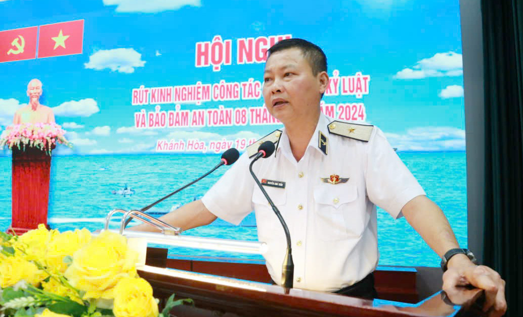 Ngày 19/8, tại TP. Cam Ranh, tỉnh Khánh Hòa, Bộ Tư lệnh Vùng 4 Hải quân tổ chức Hội nghị rút kinh nghiệm công tác chấp hành kỷ luật và bảo đảm an toàn 8 tháng đầu 2024. Chuẩn Đô đốc Nguyễn Anh Tuấn, Tư lệnh Vùng chủ trì.