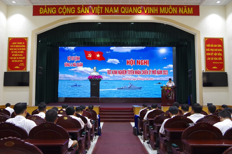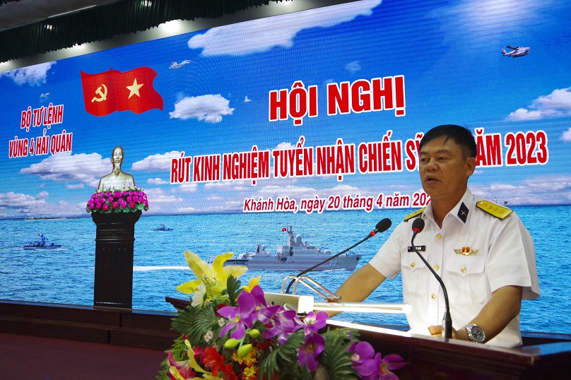 Sáng 20/4, tại TP. Cam Ranh, tỉnh Khánh Hòa, Bộ Tư lệnh Vùng 4 Hải quân tổ chức Hội nghị rút kinh nghiệm công tác tuyển quân năm 2023. Đại tá Vi Đức Thanh, Phó Tư lệnh Vùng chủ trì.