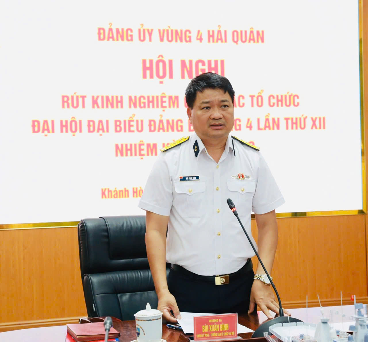 Sáng 26/5, tại TP. Cam Ranh, tỉnh Khánh Hoà, Bộ Tư lệnh Vùng 4 Hải quân đã tổ chức Hội nghị rút kinh nghiệm công tác tổ chức Đại hội đại biểu Đảng bộ Vùng 4 lần thứ XII, nhiệm kỳ 2025-2030. Thượng tá Bùi Xuân Bình, Bí thư Đảng ủy, Chính ủy Vùng chủ trì.